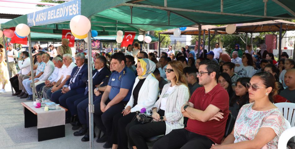 Aksu Belediye Başkanı İsa Yıldırım'ın eşi Emine Yıldırım Kültür ve Sosyal İşler Müdürü Selda Yazıcı ile birlikte Engelliler Haftası nedeniyle Mustafa Kemal Özel Eğitim Meslek Okulunda gerçekleştirilen programa katıldı.