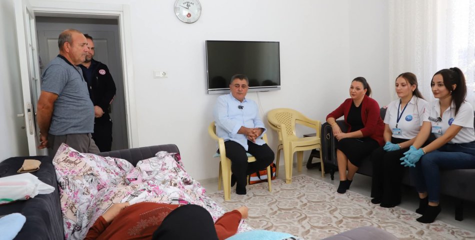 Aksu Belediye Başkanı İsa Yıldırım, Sağlık İşleri Müdürü Gülcan Çetin ve Sağlık İşleri Müdürlüğü personeliyle birlikte, Evde Sağlık hizmetleri kapsamında tedavisi devam eden Altıntaş Mahallesi’nden Gülsüm Çoban’ı evinde ziyaret etti.