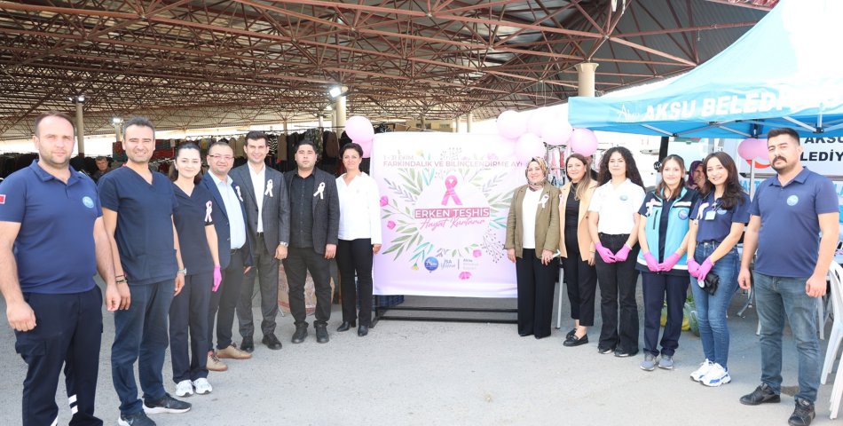 Aksu Belediyesi Sağlık İşleri Müdürlüğü, Dünya Sağlık Örgütü (DSÖ) tarafından her yıl 01-31 Ekim tarihleri arasında ilan edilen “Meme Kanseri Bilinçlendirme ve Farkındalık Ayı” kapsamında Macun Mahallesi Kapalı Pazaryeri’nde stant kurarak kanserde erken teşhis, tanı ve tedavi yöntemleri hakkında Aksulu vatandaşlara bilgiler verdi.