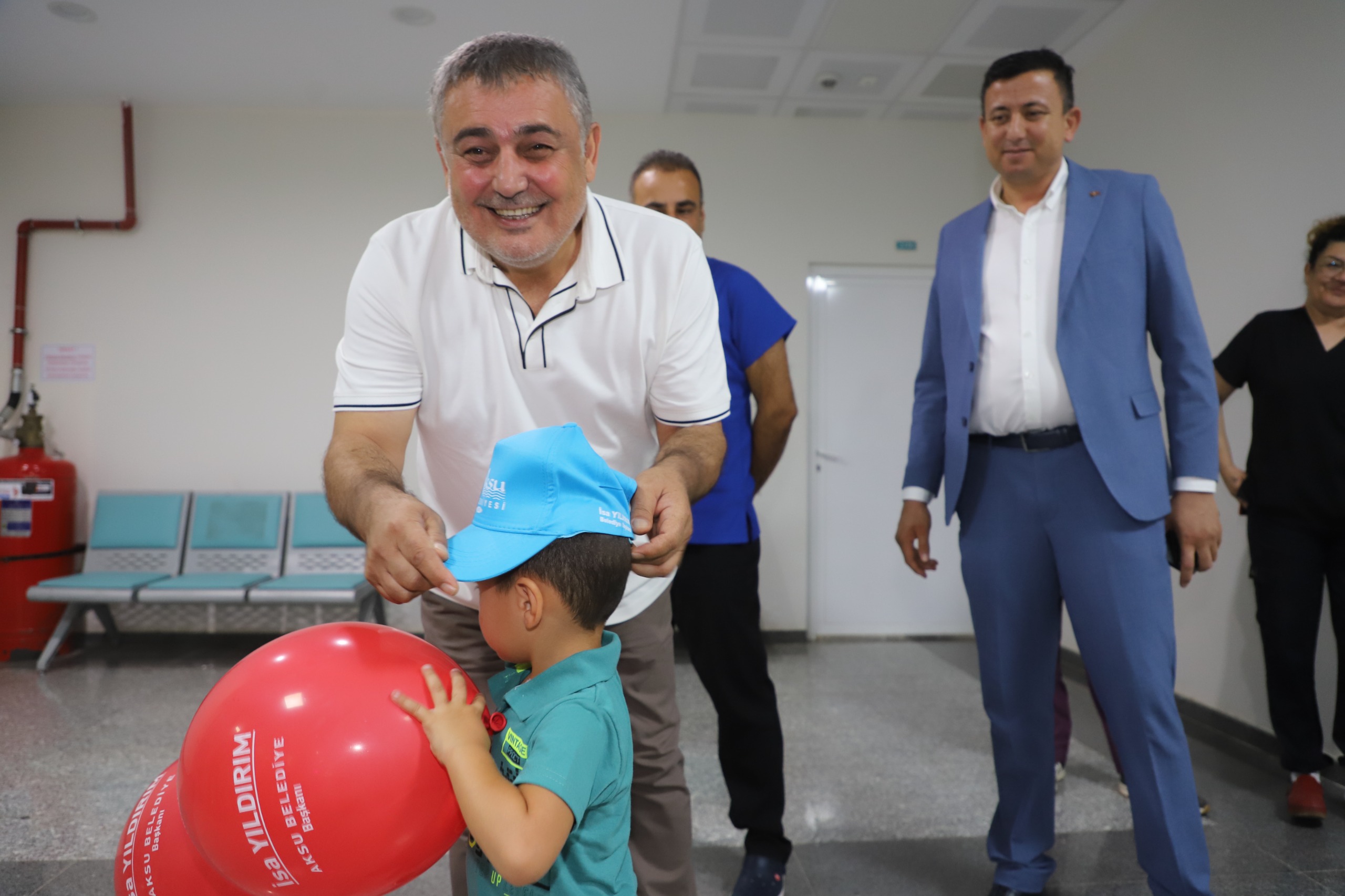 Çocuklarını sağlıklı ve güvenli bir ortamda sünnet ettiren aileler, Aksu Belediye Başkanı İsa Yıldırım başta olmak üzere emeği geçen tüm belediye personeline teşekkür etti. Başkan Yıldırım ve belediye personeli de bu özel günde çocuklara moral vermek amacıyla balon ve şapka hediye etti.