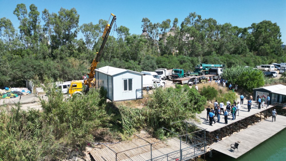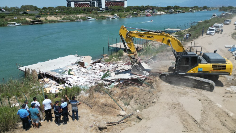 Antalya Valiliği’nin “ Denizler Halkındır” projesi ile Çevre, Şehircilik ve İklim Değişikliği İl Müdürlüğü, DSİ 13. Bölge Müdürlüğü, Sahil Güvenlik Aksu Destek Tim Komutanlığı ve Aksu Kaymakamlığının ‘kaçak yapılar kaldırılsın’ talepleri doğrultusunda, Aksu Çayı’ndaki kaçak yapılar kaldırılıyor.