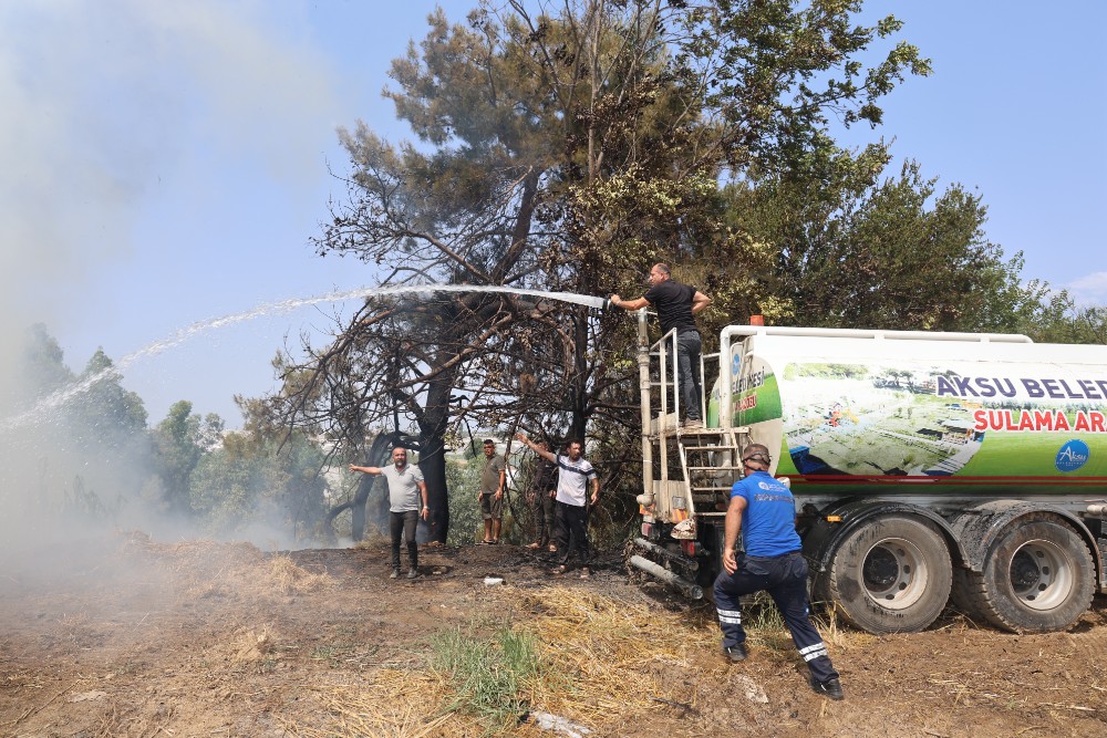 Cumhuriyet Mahallesinde otluk alanda başlayan yangın rüzgârın etkisiyle kısa sürede yayılarak evleri, seraları ve işyerlerini tehdit etti. Yangına ilk müdahaleyi Aksu Belediyesi arazözleri ve ekipleri yaptı. Aksu Belediye Başkanı İsa Yıldırım, Başkan Yardımcıları Mevlüt Uludağ ve Hüseyin Çelik ile meclis üyeleri söndürme çalışmalarına bizzat katılarak ekiplere yardım etti.
