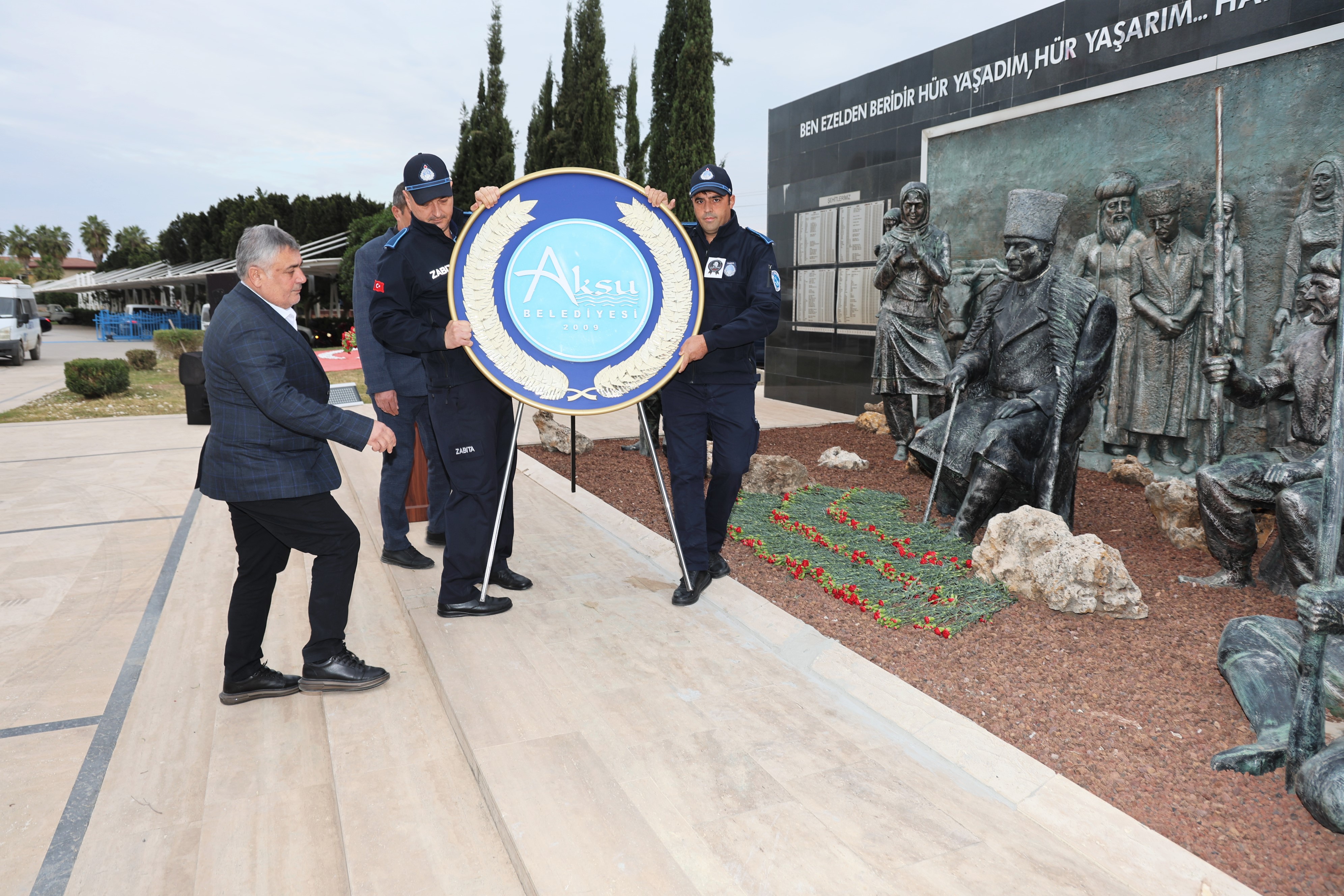 Aksu Belediyesi bahçesindeki Atatürk Anıtı önünde gerçekleştirilen törene; Belediye Başkanı İsa Yıldırım, Başkan Yardımcıları, Meclis Üyeleri, birim müdürleri, siyasi parti temsilcileri, mahalle muhtarları, sivil toplum kuruluşu temsilcileri katıldı.