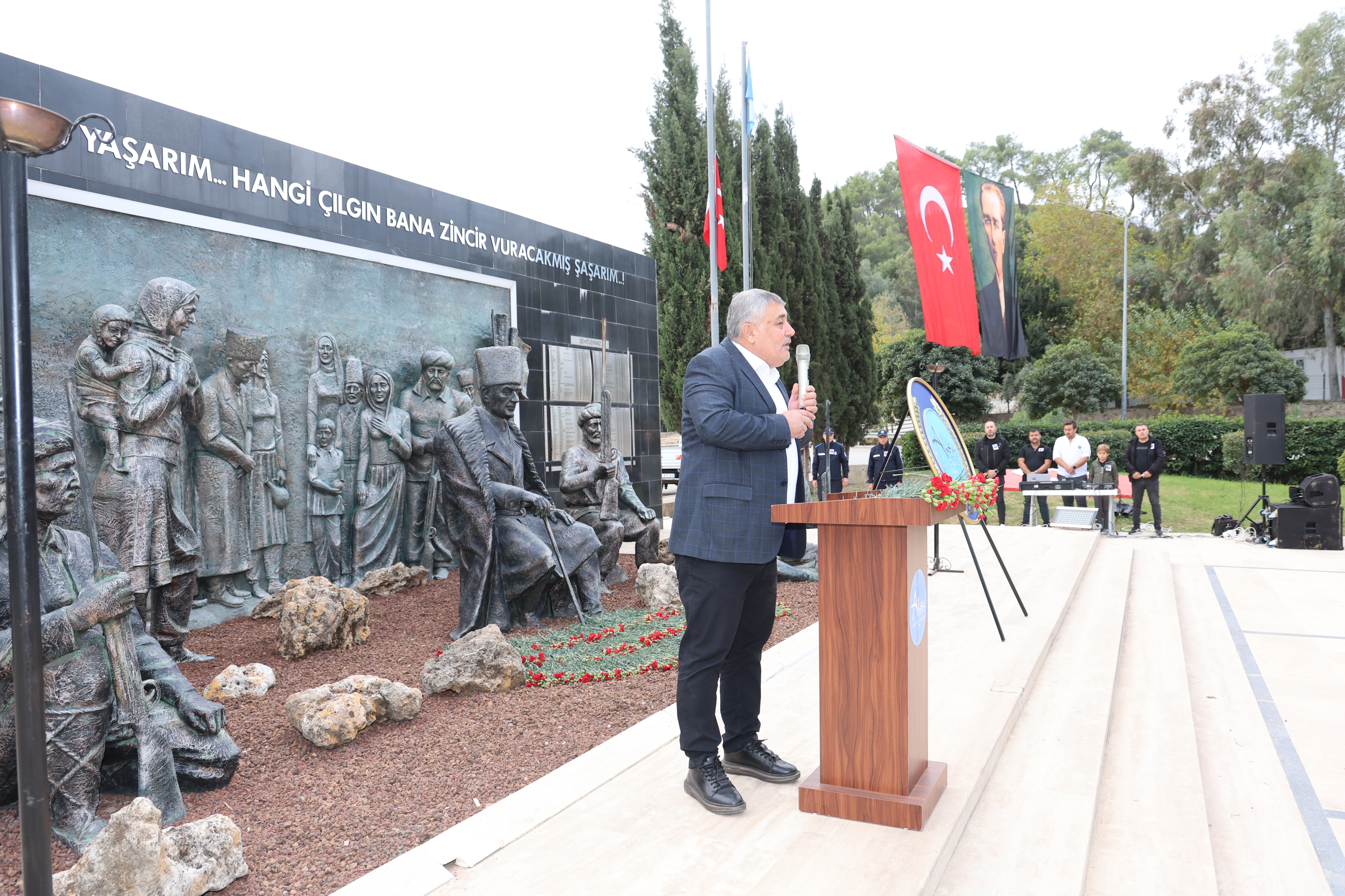 “Bugün 10 Kasım, bugün Mustafa Kemal Atatürk’ü yani Atamızı ebediyete uğurladığımız gün. O, Hakk’a kavuşmuş olsa da onun eseri hala yaşıyor, onun yolu yüreğimizde hala canlı bir biçimde duruyor. Mustafa Kemal’i anlamak, öncelikle damarlarımızdaki asil kana dönmekle başlar. Bu nasıl olacak, bunun için öncelikle Türk milletinin kendi kültürüne, yani özüne dönmesi ve cehaletten kurtulması gerekmektedir. Türk milletinin yeniden dirilişi Mustafa Kemal ile başladı. Mustafa Kemal’in yolunda yürüdüğümüz sürece, bu millet asla yok olmayacaktır. Onun yolu nedir? İlimdir, bilimdir, çalışmaktır, okumaktır, ahlâklı olmaktır. Atatürk ne diyor; ‘Vatanını en çok seven görevini en iyi yapandır” Bunun için ne yapacağız ilim ve bilim ışığında hep birlikte çok çalışacağız. Başta ulusumuzun yüreğinde ölümsüzleşen Gazi Mustafa Kemal Atatürk olmak üzere, onunla birlikte savaşarak bizlere vatanımızı hür bir şekilde emanet eden ecdadımızdan Allah razı olsun. Ruhları şad, mekânları cennet olsun” dedi.