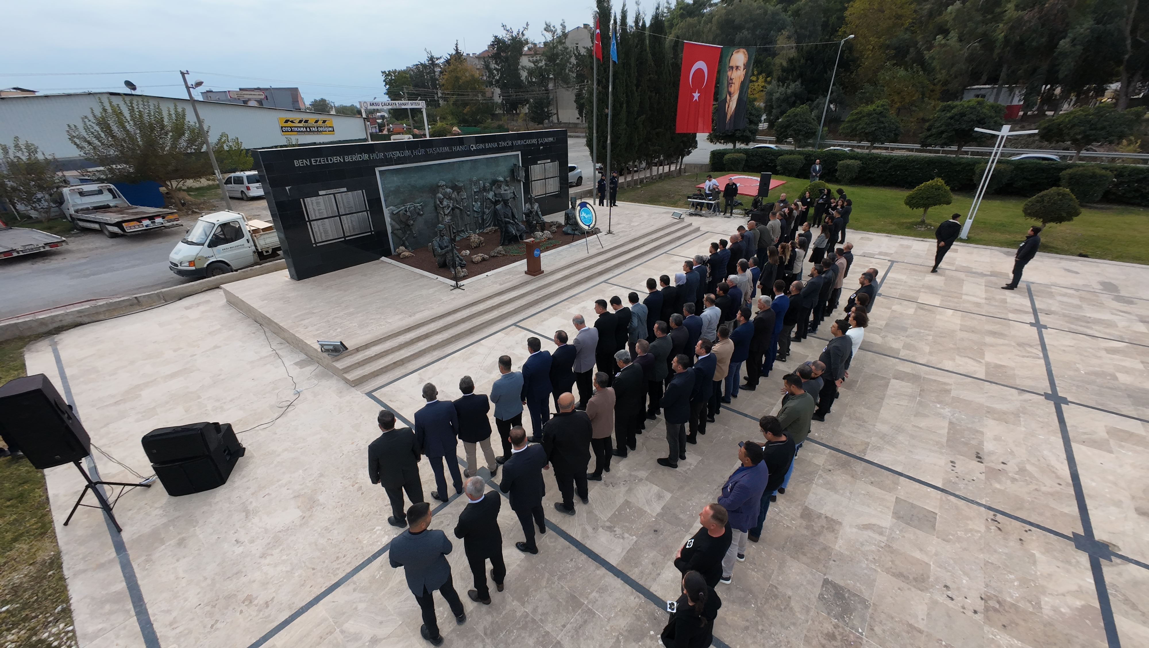 Tören; Aksu Belediye Başkanı İsa Yıldırım'ın Atatürk Anıtı’na çelenk sunmasıyla başladı. Saat 09.05’te çalan siren sesiyle 2 dakikalık saygı duruşunda bulunuldu. Saygı duruşunun ardından okunan İstiklal Marşı’yla birlikte bayraklar yarıya indirildi. Başkan Yıldırım törende yaptığı konuşmada şunları söyledi;