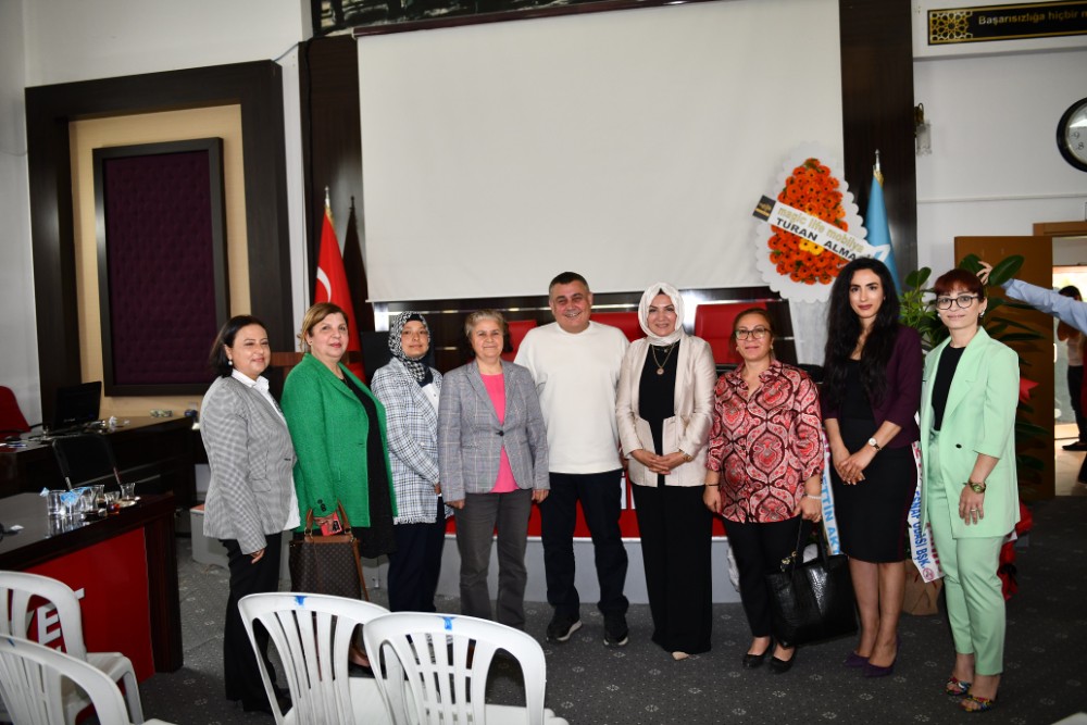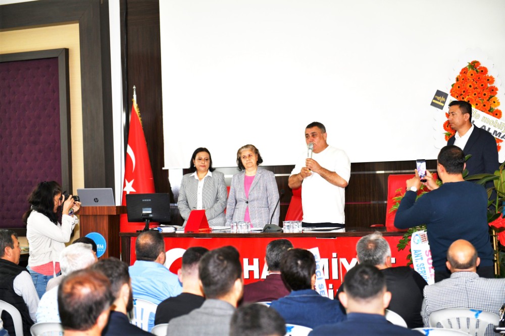 Genel Kurul'da mevcut Başkan Tülay Ateş'ten başkanlık bayrağını Turan Şahin devraldı. Aksu Belediye Başkanı İsa Yıldırım Tülay Ateş'e hizmetlerinden dolayı plaket takdim ederken, Turan Şahin'e başarılar diledi.