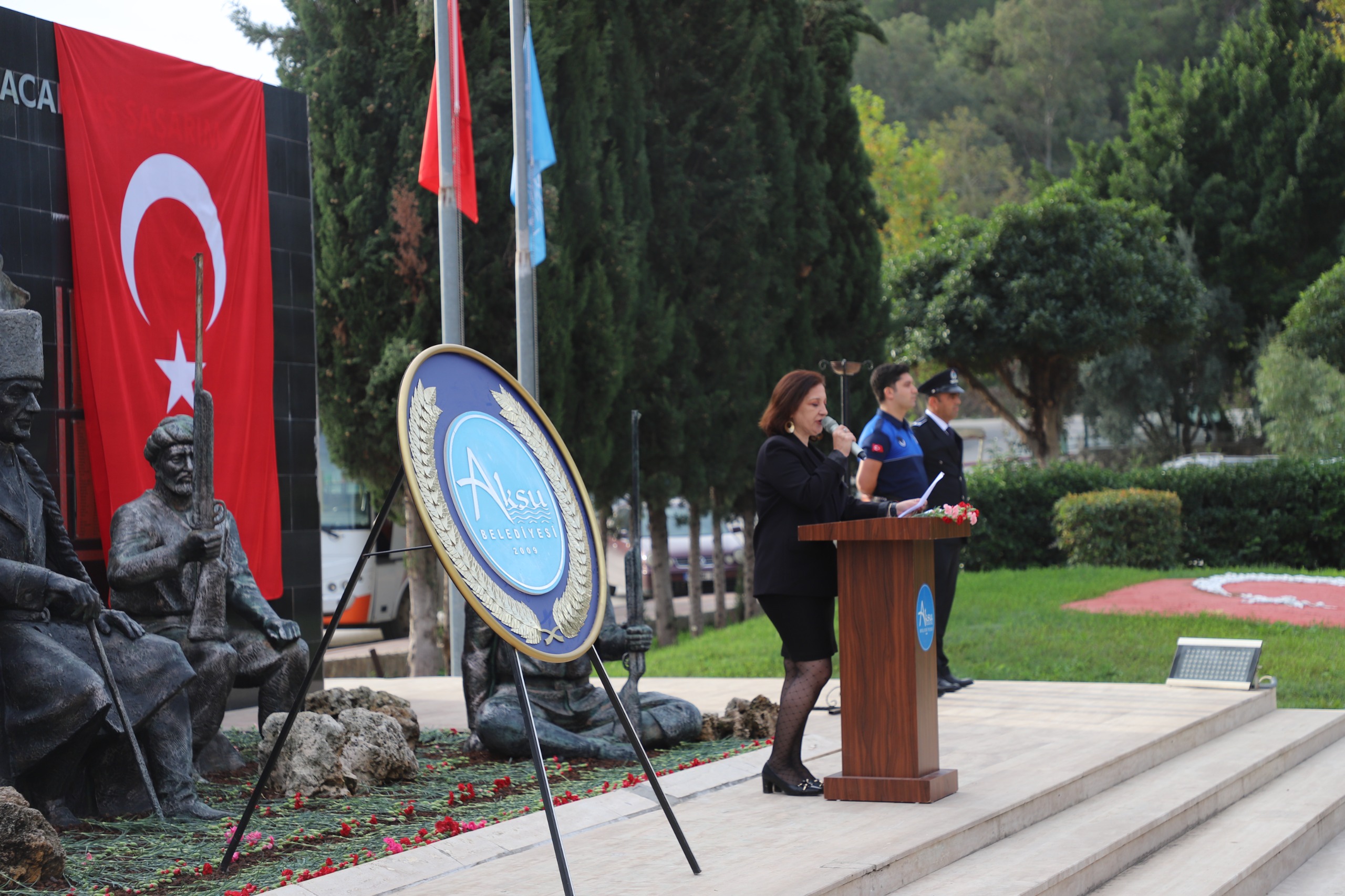 Aksu Belediyesi bahçesinde Atatürk Anıtı önünde gerçekleştirilen törene; Belediye Başkanı İsa Yıldırım, başkan yardımcıları, meclis üyeleri, birim müdürleri, mahalle muhtarları, sivil toplum kuruluşu temsilcileri ve belediye personeli katıldı.