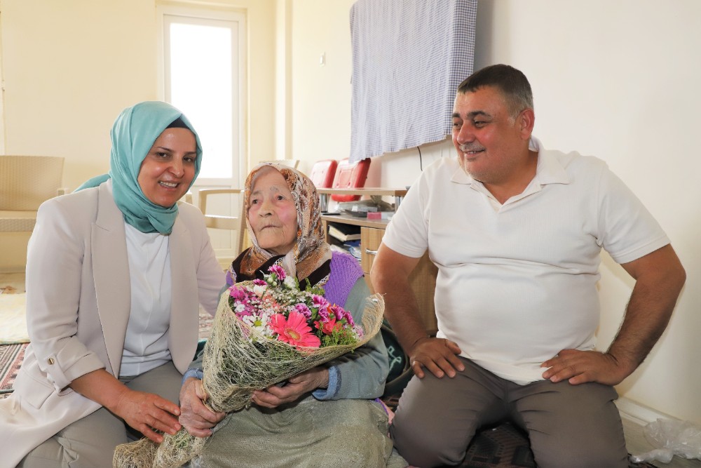 Başkan Yıldırım'ın eşi Emine Yıldırım ziyaretler kapsamında ayrıca Çalkaya Mahallesinde yaşayan 1927 doğumlu Medine Çoban ile Cihadiye Mahallesinden 1945 doğumlu Nermin Demirel'i evinde ziyaret ederek, Anneler Günü’nü kutladı.