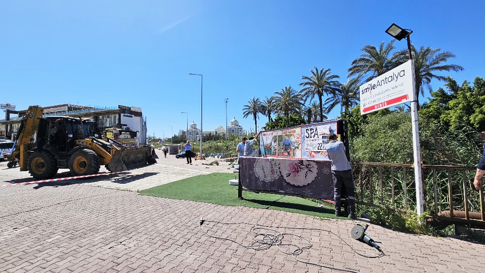 Turizmcilerden ve bölgedeki esnaf şikâyetlerini de dikkate alan Aksu Belediyesi, bölgede görüntü kirliliğine neden olan tabela, totem, sundurma ve tezgâh gibi unsurlarla, trafik güvenliği ve asayişi de tehdit eden kaçak durumundaki yapılar Zabıta Müdürlüğü ve Yapı Kontrol Müdürlüğü ekiplerince kaldırıyor.