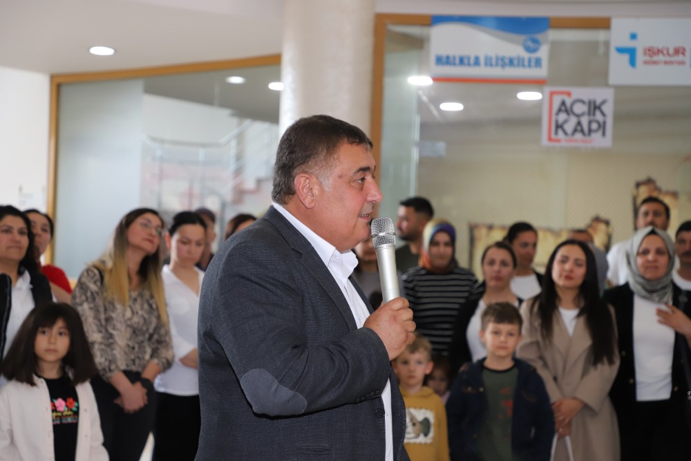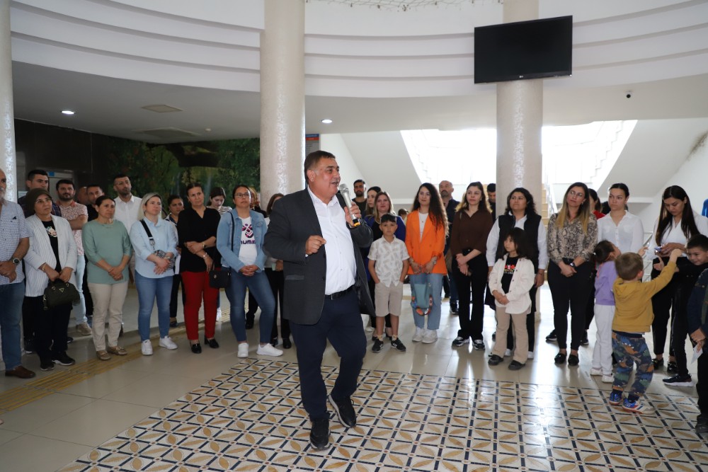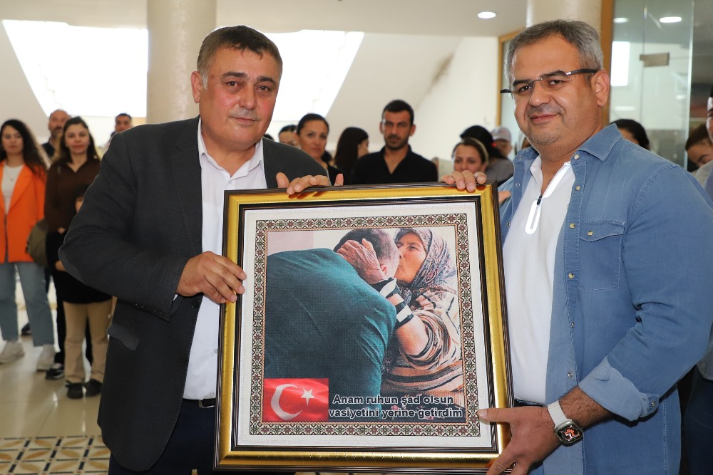 Belediyedeki bayramlaşma töreninde Başkan Yıldırım’ı eşi Emine Yıldırım ve kızları da yalnız bırakmazken, Korkuteli İmecikliler Dernek Başkanı Aksu Medikal Sahibi Ömer Şahin Başkan Yıldırım’a annesiyle birlikte fotoğrafının yer aldığı bir tablo hediye etti. Hediye karşısında duygulanan Yıldırım, Şahin’e teşekkür etti.