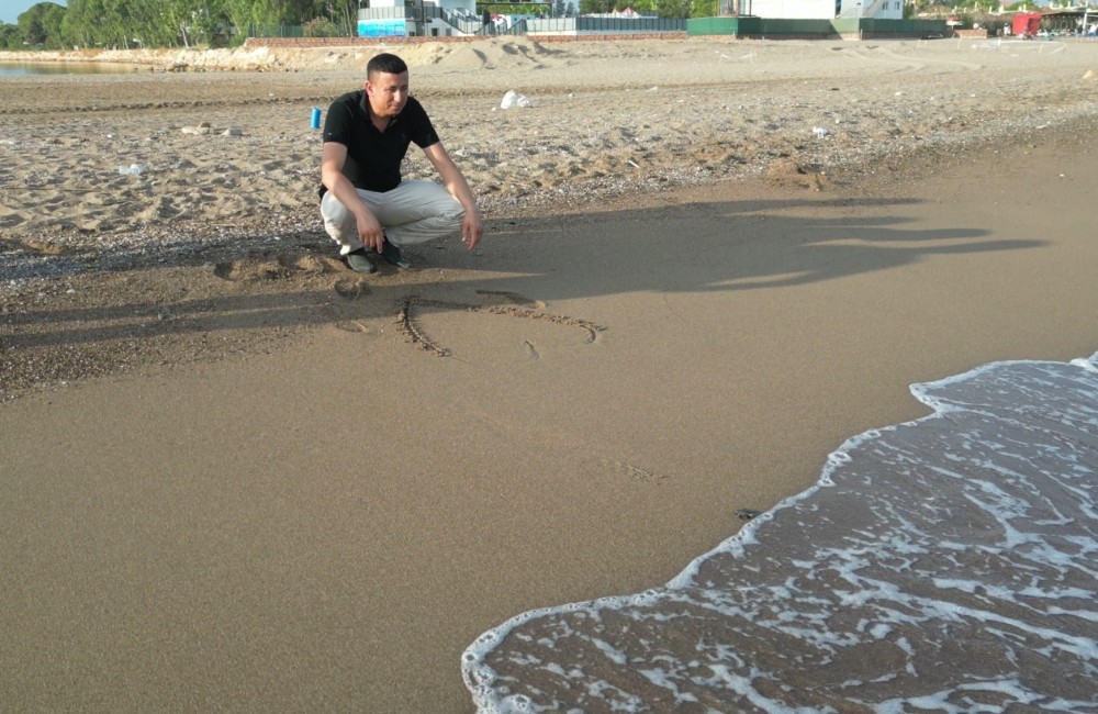 Aksu Belediyesi’nin sahilde oluşturduğu Halk Plajlarındaki çalışmaları inceleyen Aksu Belediye Başkan Yardımcısı Hüseyin Çelik, günün sıcak saatlerinde sahilden uzakta kumların arasında bir caretta caretta yavrusunun çabaladığını gördü.