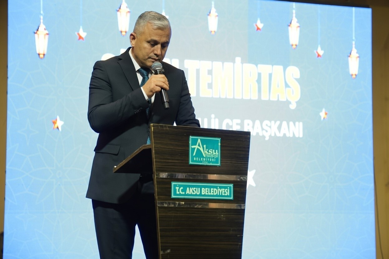 AK Parti Aksu İlçe Başkanı Sinan Temirtaş ise; “Ramazan’ın rahmet ve bereketini sizlerle paylaşmanın mutluluğunu yaşıyoruz. Sayın Cumhurbaşkanımızın da her fırsatta ifade ettiği gibi en büyük gücümüz milletimizin sarsılmaz birliği ve kardeşliğidir. Bizler de bu anlayışla her zaman hemşehrilerimizle bir arada olmaya, gönül köprüleri kurmaya devam edeceğiz. Bizleri bu bereketli iftar sofrasında buluşturan Aksu Belediye Başkanımız İsa Yıldırım’a, belediye çalışanlarımıza ve davetimize icabet eden tüm protokol üyelerimize teşekkür ediyorum. Cenab-ı Allah tuttuğumuz oruçları ve dualarımızı kabul eylesin; birliğimizi daim, devletimizi güçlü, milletimizi aziz kılsın” dedi.