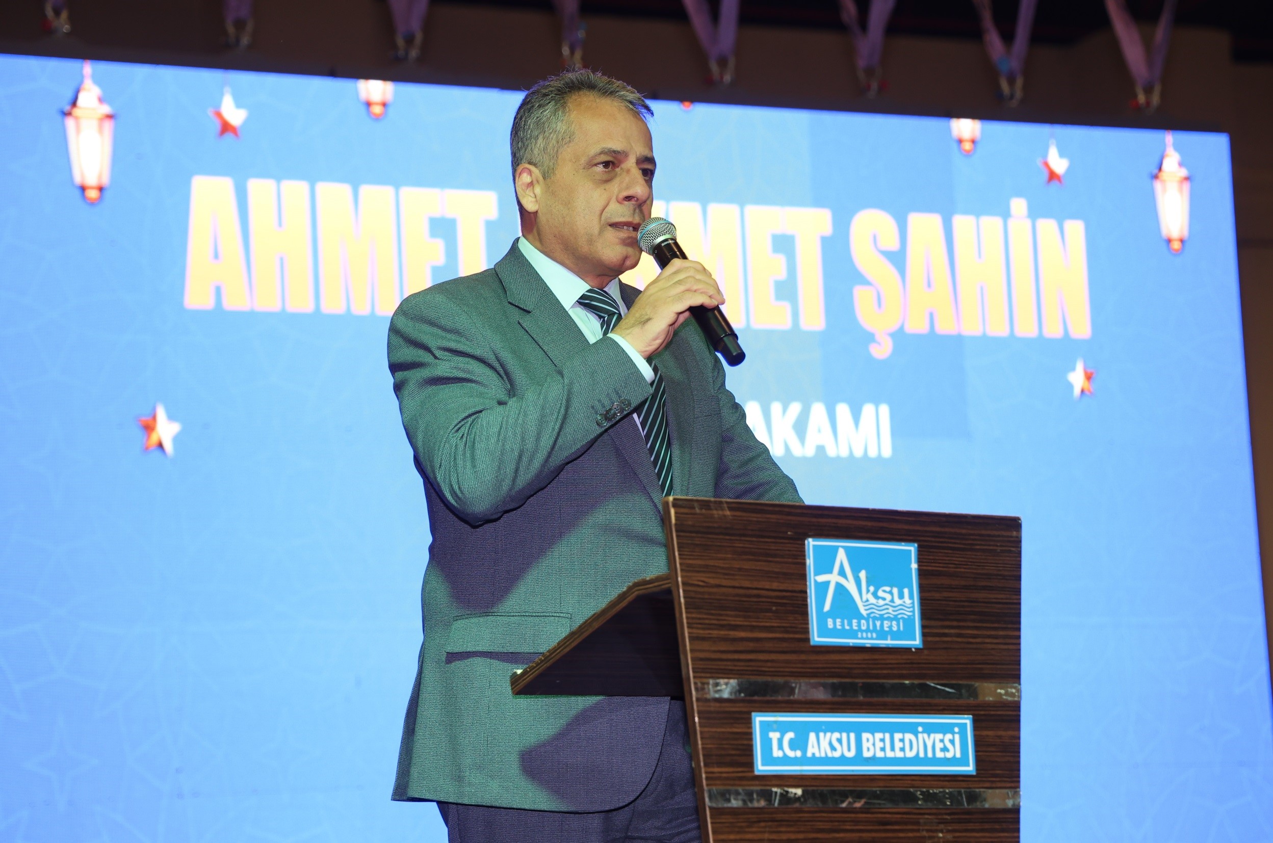 Aksu Belediye Başkanı İsa Yıldırım iftar programında yaptığı konuşmada; Ramazan ayının manevi ikliminde ilçe sakinleriyle aynı gönül sofrasında buluşmanın mutluluğunu yaşadıklarını ifade ederek şunları söyledi: “Belediyemiz ve İlçe Başkanlığımızın birlikte düzenlediği iftar programımıza katılarak gönül soframızı onurlandıran değerli protokol üyelerimize ve kıymetli hemşehrilerimize şükranlarımı sunuyorum. İstiyoruz ki yemeklerimiz yensin, konuşmalarımız nihayete ersin ancak kardeşliğimiz ve dostluğumuz daim olsun. Bugün dünyada kadınların ve çocukların hayatını kaybettiği, ülkelerin ve ocakların yandığı acı olaylara şahitlik ediyoruz. Aynı acıların bu topraklarda yaşanmaması için en büyük gücümüz birbirimize olan bağlılığımızdır. Aziz şehitlerimizin emanetine sahip çıkmalı, birlik ve kardeşliğimizi her zaman güçlü tutmalıyız. Atatürk’ün söylediği gibi ‘Mevzu bahis vatansa gerisi teferruattır’ anlayışıyla hareket ettiğimiz sürece bu vatanın bir karış toprağına kimse el uzatamaz. Allah birliğimizi, beraberliğimizi ve dirliğimizi daim eylesin” dedi.