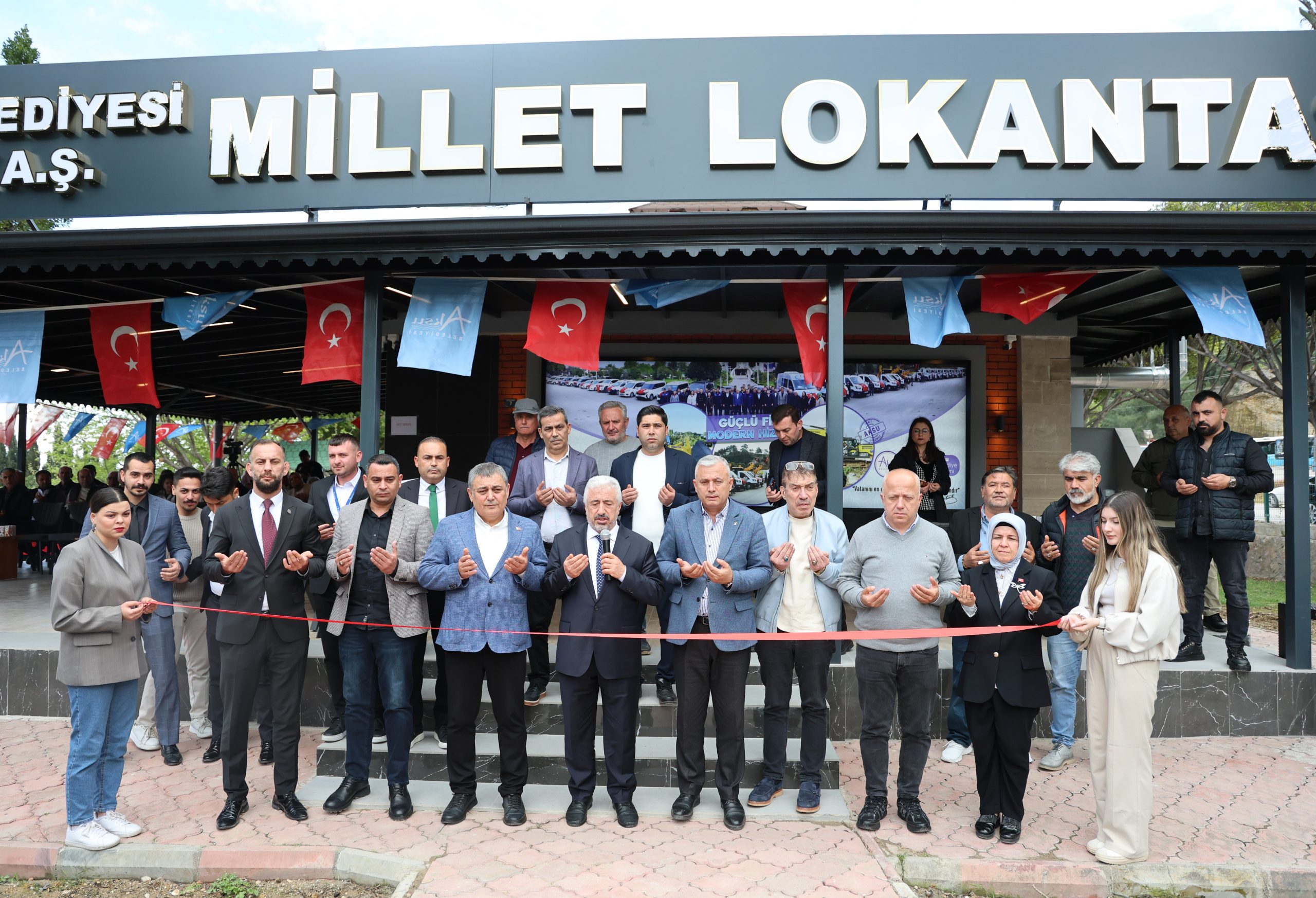 Aksu İlçe Müftüsü Yusuf Ulusoy tarafından yapılan duanın ardından protokol üyeleri tarafından kurdele kesilerek Millet Lokantası ve Kafesi ikinci şubesi resmen hizmete açıldı.