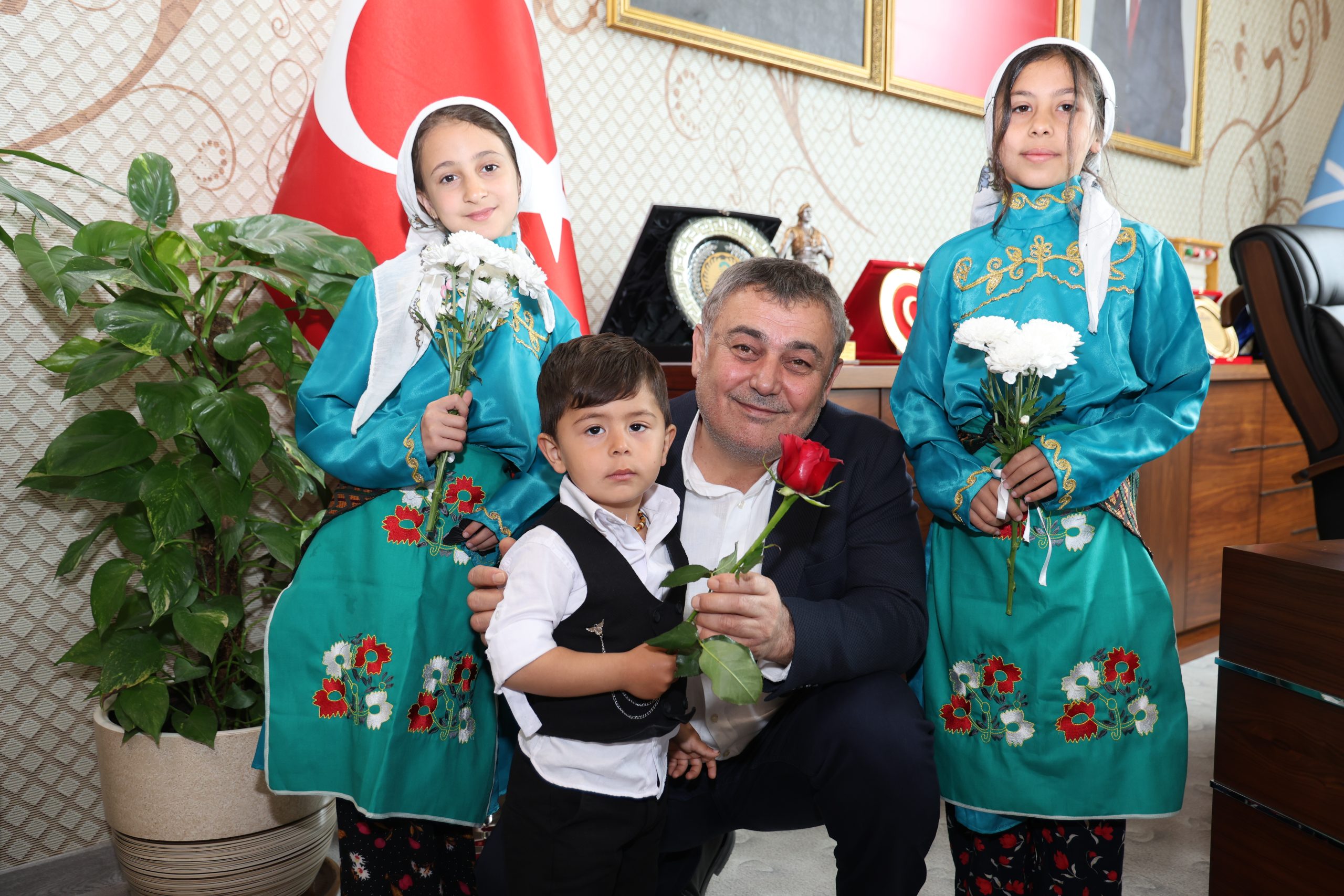 Savaşın olmadığı, barışın egemen olduğu bir dünya dileyen çocuklarla yakından ilgilenen ve onlarla sohbet eden Başkan Yıldırım’ın büyüyünce hangi mesleği yapmak istediklerini yönündeki sorusuna ise temsili başkanlar; polis, belediye başkanı ve pilot olmak cevabını verdi.