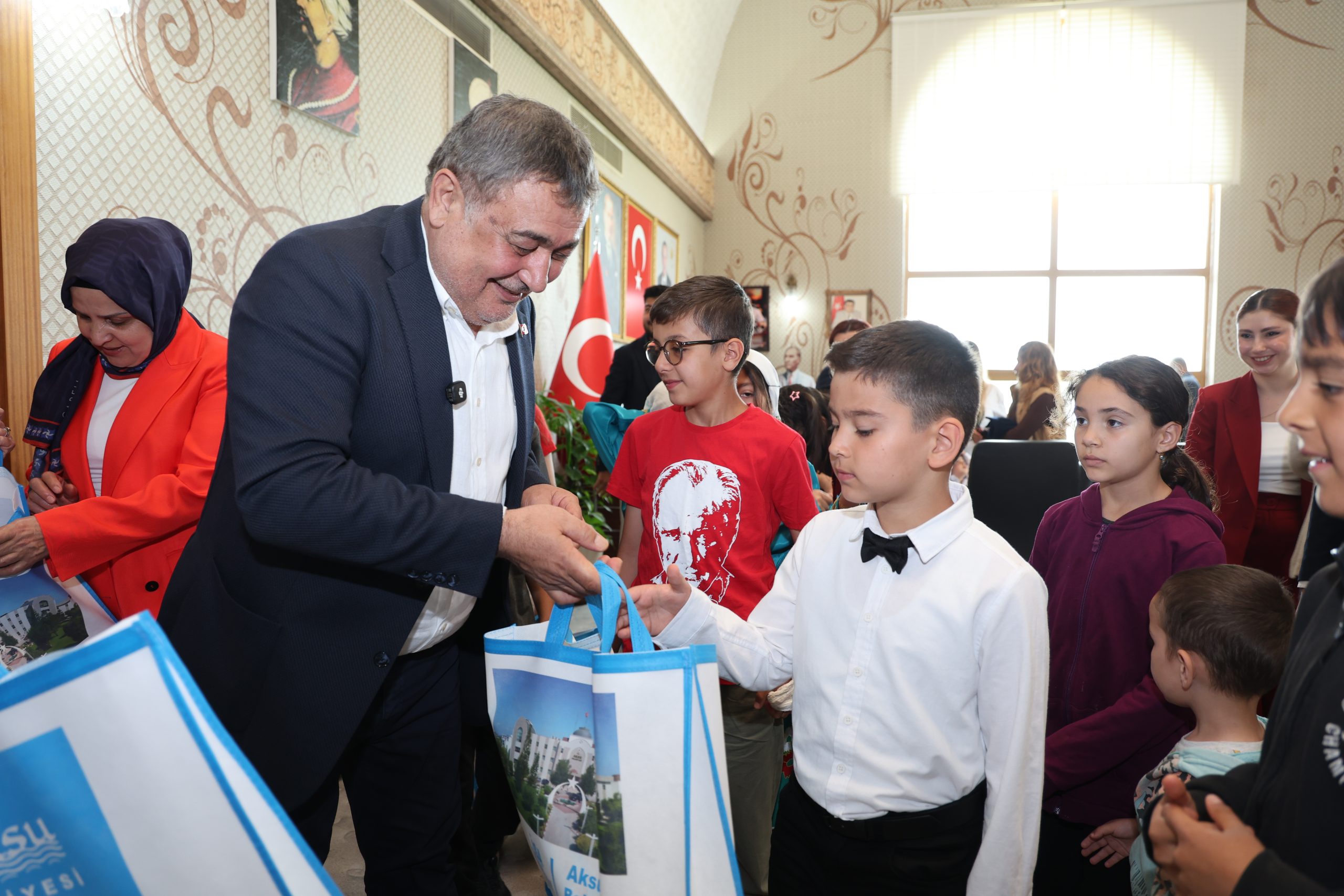Aksu Belediye Başkanı İsa Yıldırım, 23 Nisan Ulusal Egemenlik ve Çocuk Bayramı dolayısıyla başkanlık makamını Aksu İlkokulu öğrencilerine devretti.