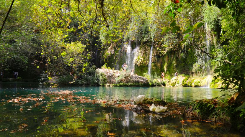 Antalya-Isparta karayolunun 24.km’nden sola dönülerek 7km devam edildiğinde ulaşılır. Kurşunlu Şelalesi’ne su 18 metre yükseklikten dökülmekte ve küçük şelaleciklerle 7 adet küçük gölet birbirine bağlanmakta 2kilometrekarelik bir kanyonun içinde kalmaktadır.1986 yılında park haline getirilmiş 33 hektarlık bir alanı kaplamakta yerli ve yabancı tüm turistlerin ilgisini çekmektedir.