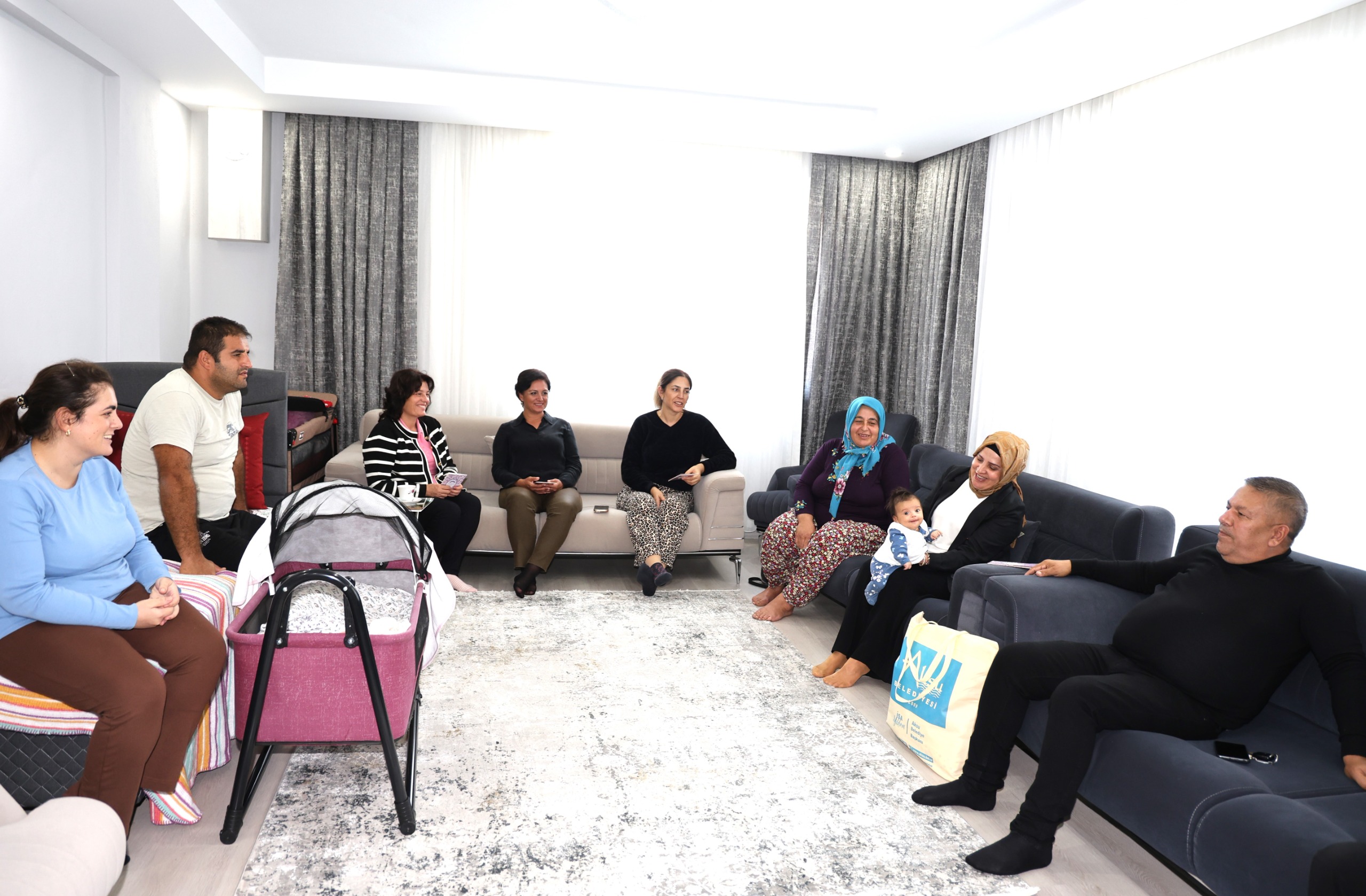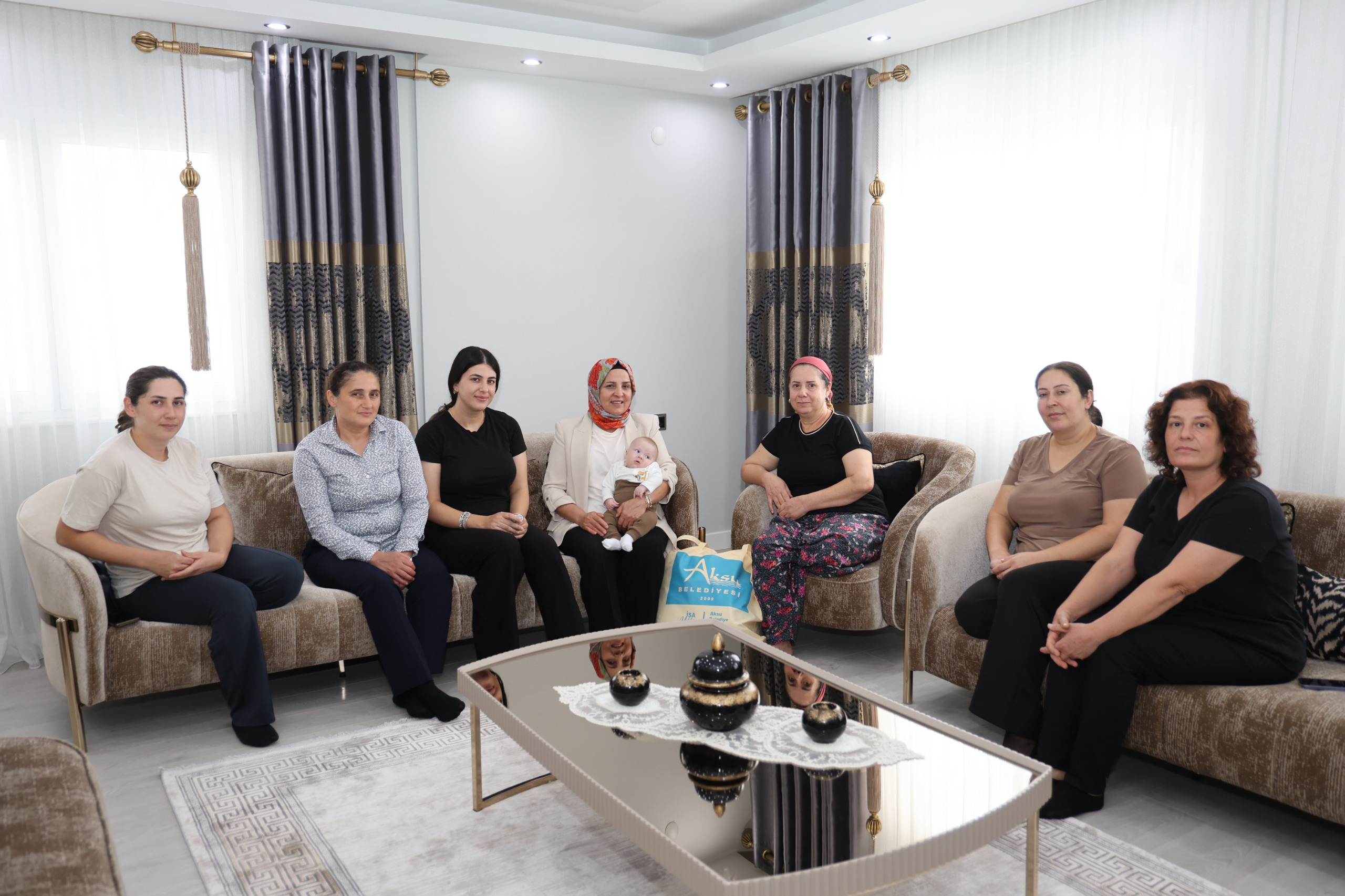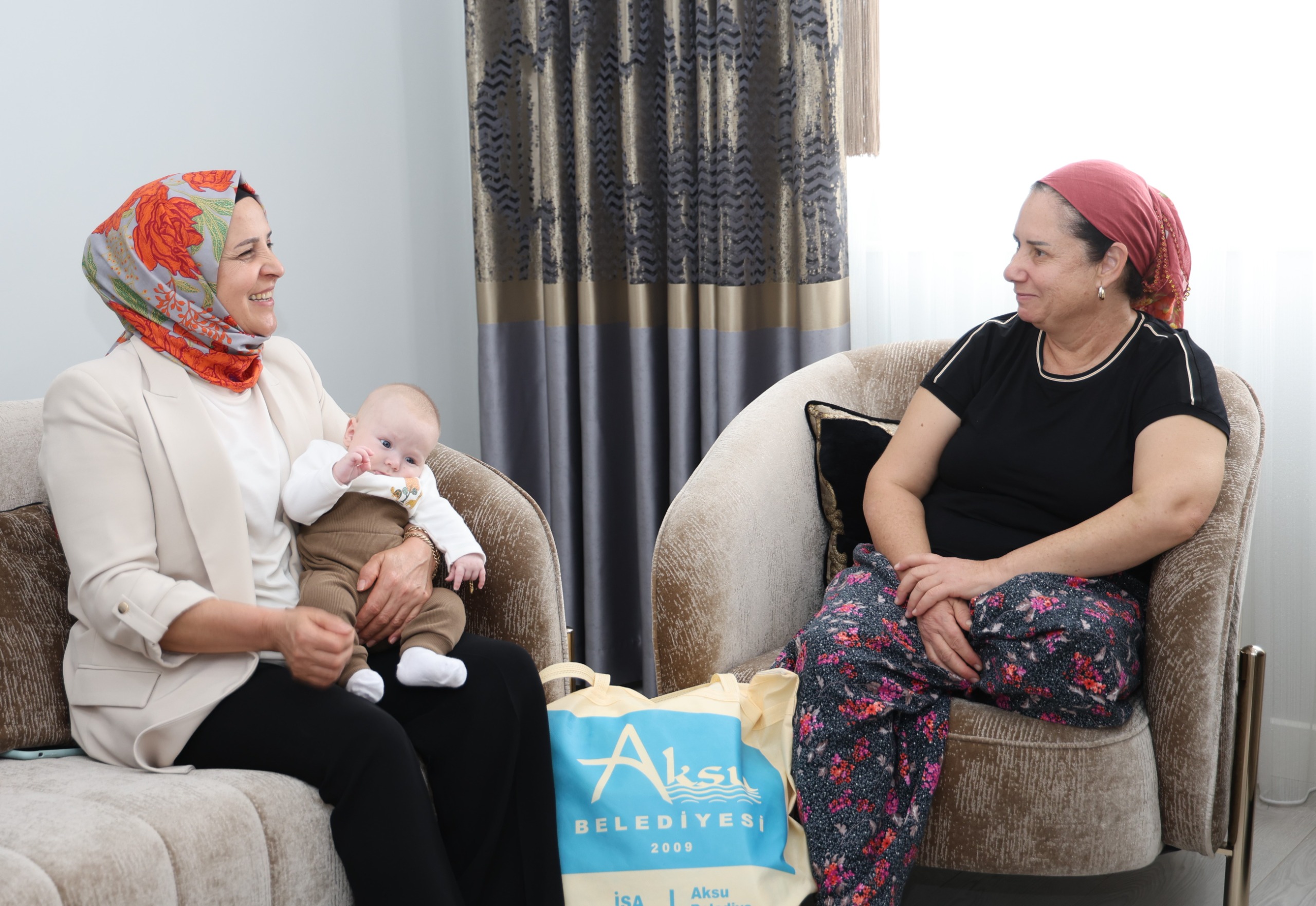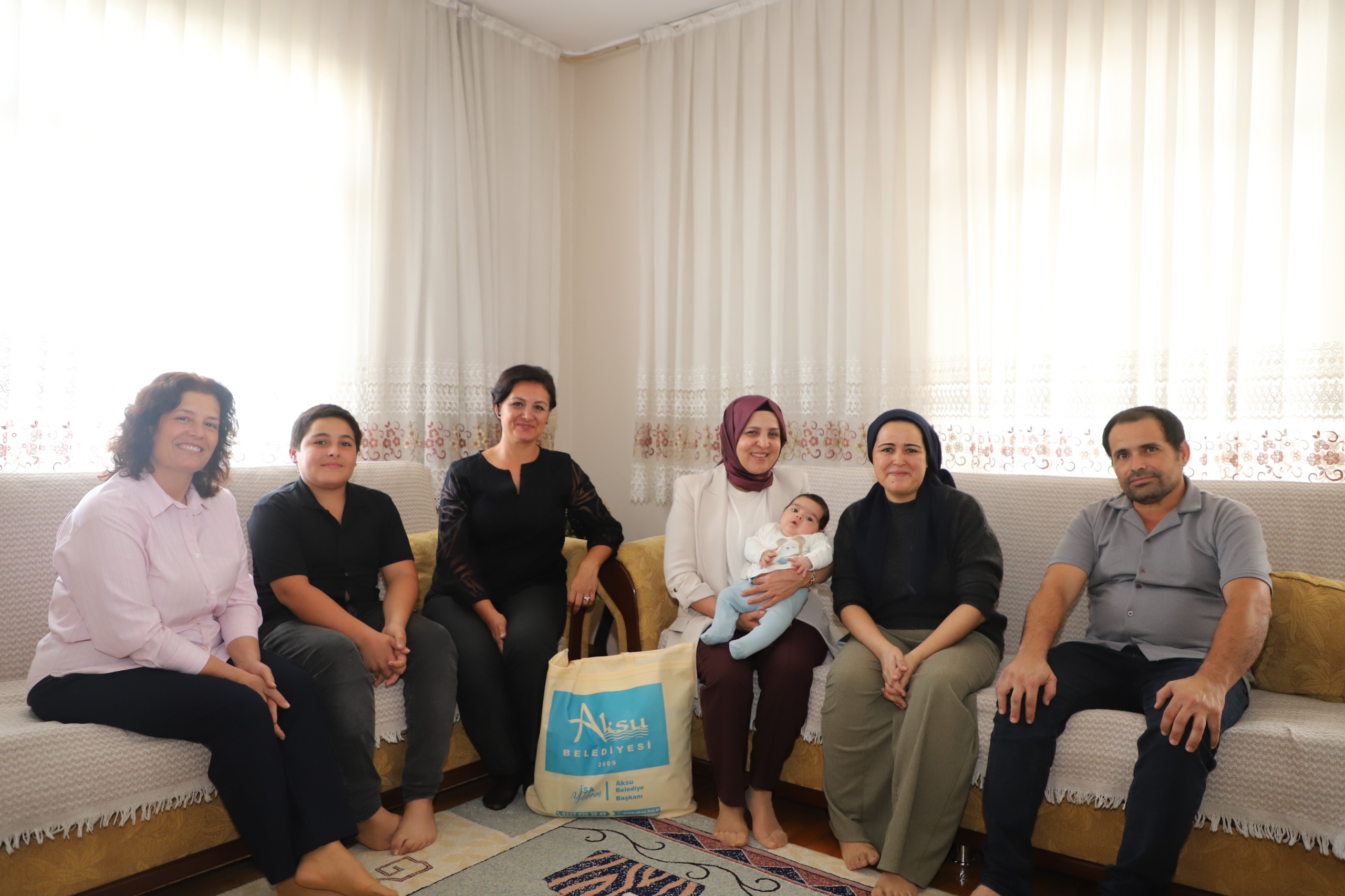 Aksu Belediye Başkanı İsa Yıldırım’ın eşi Emine Yıldırım, Aksu Belediyesi Kültür, Sanat ve Sosyal İşler Müdürlüğü ekipleriyle birlikte aileleri evlerinde ziyaret ederek yeni doğan bebekler için hazırlanan hediye çantalarını takdim etti.