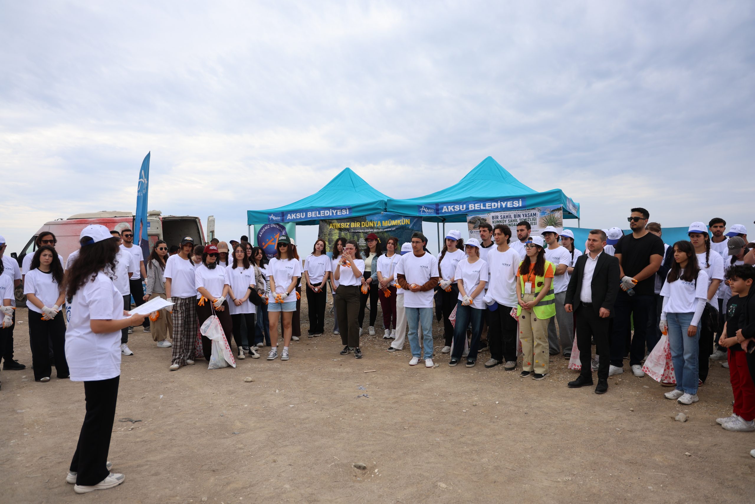 Aksu Belediyesi İklim Değişikliği ve Sıfır Atık Müdürlüğü, Akdeniz Üniversitesi Fen Fakültesi Biyoloji Bölümü 3. sınıf öğrencilerinin toplumsal duyarlılık ve katkı projeleri dersi kapsamında “Bir Sahil, Bin Yaşam” sloganıyla Kumköy sahilinde düzenlenen kıyı temizliği etkinliğinde yer aldı.