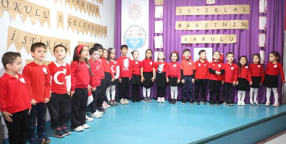 Aksu Belediyesi Şahin Harun Kırbıyık Anaokulu, 12 Mart İstiklâl Marşı’nın Kabulü ve Mehmet Akif Ersoy’u Anma Günü’nü gurur dolu bir programla kutladı. Aksu Belediye Başkanı İsa Yıldırım’ın eşi Emine Yıldırım’ın; Başkan Yardımcısı Veli Çetin, belediye birim müdürleri, okul yönetimi, veli ve öğrencilerin bir araya geldiği programda, anaokulu öğrencileri bağımsızlığın timsali İstiklal Marşı’nı büyük bir coşkuyla okurken, öğrenci velileri ve katılımcılar duygu dolu anlar yaşandı.
