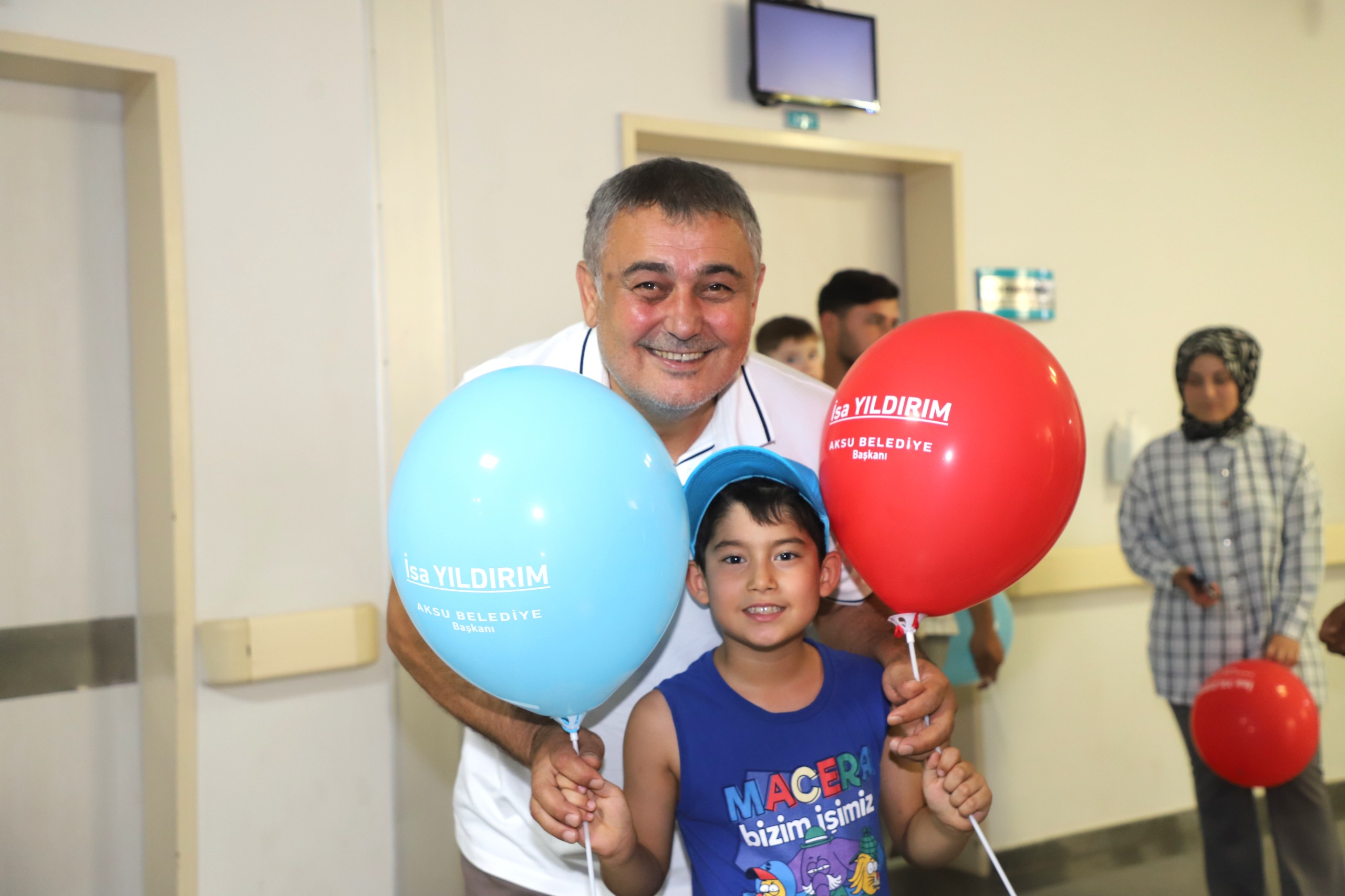 Çocuklarını sağlıklı ve güvenli bir ortamda sünnet ettiren aileler, Aksu Belediye Başkanı İsa Yıldırım başta olmak üzere emeği geçen tüm belediye personeline teşekkür etti. Başkan Yıldırım ve belediye personeli de bu özel günde çocuklara moral vermek amacıyla balon ve şapka hediye etti.