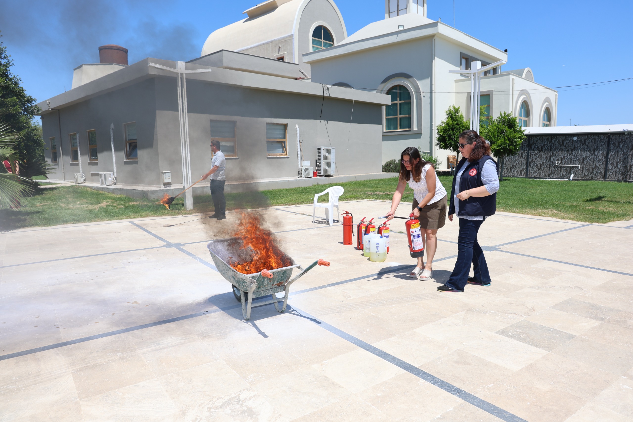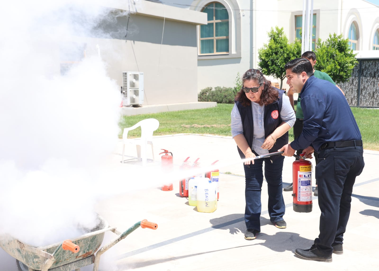 Belediye personelinin olası yangınlara karşı bilinçlendirilmesi amacıyla düzenlenen eğitimde, yangına müdahale yöntemleri, hem teorik hem de uygulamalı olarak anlatıldı.