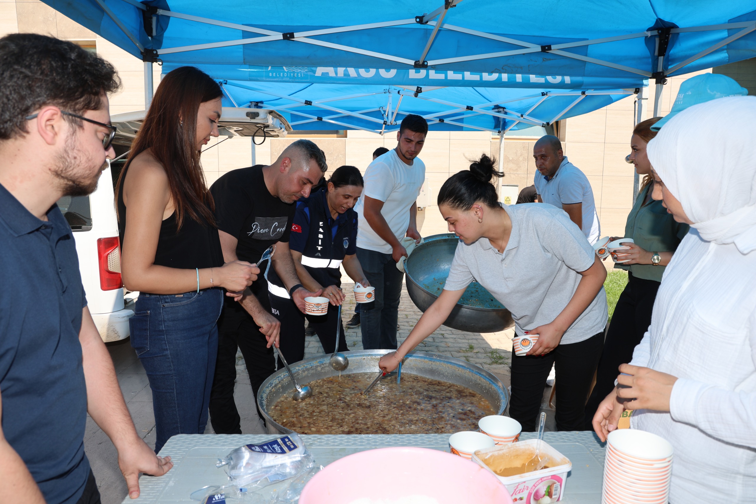 Geleneksel değerlerin yaşatılması ve toplumsal dayanışmanın güçlendirilmesi amacıyla düzenlenen etkinlikte, birlik ve beraberlik duygusu paylaşılan her aşure kasesiyle bir kez daha pekiştirildi.