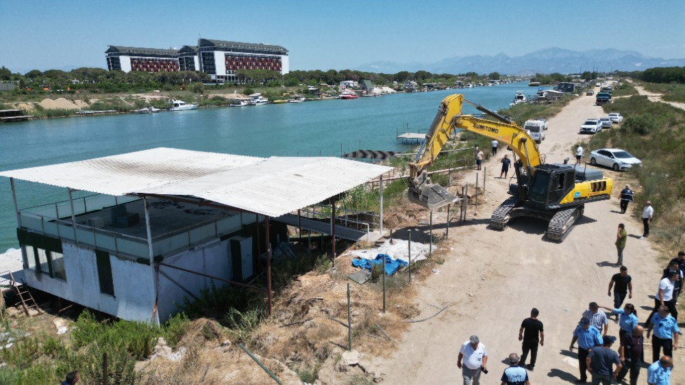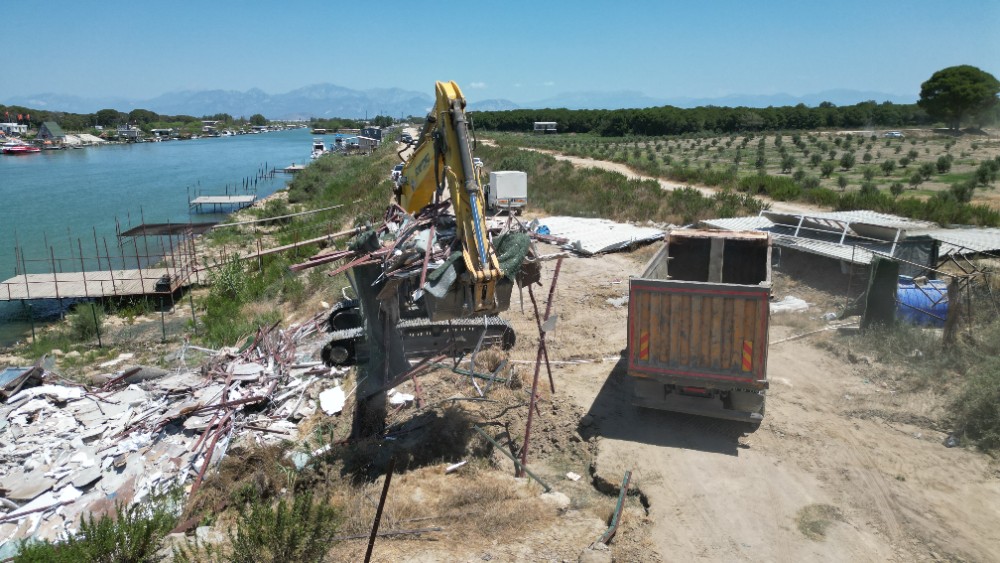 Antalya Valiliği’nin “ Denizler Halkındır” projesi ile Çevre, Şehircilik ve İklim Değişikliği İl Müdürlüğü, DSİ 13. Bölge Müdürlüğü, Sahil Güvenlik Aksu Destek Tim Komutanlığı ve Aksu Kaymakamlığının ‘kaçak yapılar kaldırılsın’ talepleri doğrultusunda, Aksu Çayı’ndaki kaçak yapılar kaldırılıyor.