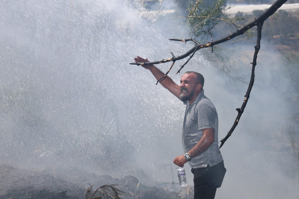 Cumhuriyet Mahallesinde otluk alanda başlayan yangın rüzgârın etkisiyle kısa sürede yayılarak evleri, seraları ve işyerlerini tehdit etti. Yangına ilk müdahaleyi Aksu Belediyesi arazözleri ve ekipleri yaptı. Aksu Belediye Başkanı İsa Yıldırım, Başkan Yardımcıları Mevlüt Uludağ ve Hüseyin Çelik ile meclis üyeleri söndürme çalışmalarına bizzat katılarak ekiplere yardım etti.