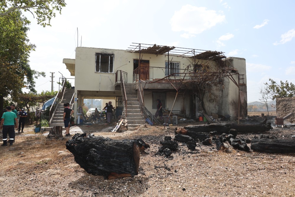 Aksu Cumhuriyet Mahallesinde otluk alanda çıkan ve kısa sürede büyüyen yangında 4 sera ve 2 ev kullanılamaz hale geldi.