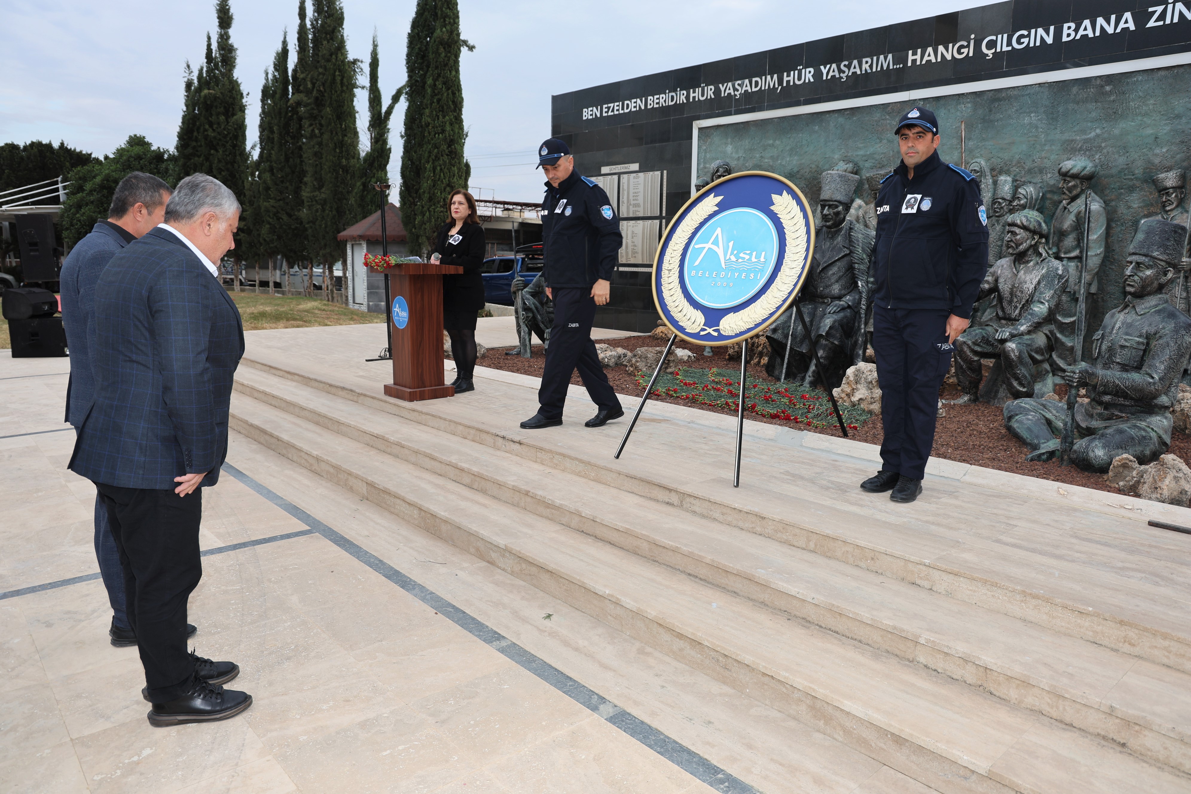 Aksu Belediyesi bahçesindeki Atatürk Anıtı önünde gerçekleştirilen törene; Belediye Başkanı İsa Yıldırım, Başkan Yardımcıları, Meclis Üyeleri, birim müdürleri, siyasi parti temsilcileri, mahalle muhtarları, sivil toplum kuruluşu temsilcileri katıldı.