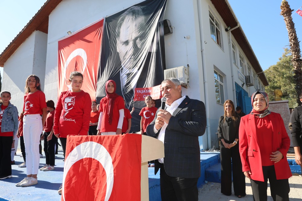 Cumhuriyetin 101. yıldönümü nedeniyle, Aksu Ortaokulu'ndaki törene; Aksu Belediye Başkanı İsa Yıldırım, eşi Emine Yıldırım, Belediye Başkan Yardımcıları Mevlüt Uludağ, Hasan Şişli, Meclis Üyeleri, Kültür ve Sosyal İşler Müdürü Selda Yazıcı, Basın Yayın Halkla İlişkiler Müdürü Yusuf Dalaman, Aksu Milli Eğitim Şube Müdüru Hasan Kürlü, siyasi parti temsilcileri, öğrenci, öğretmen ve vatandaşlar katıldı.