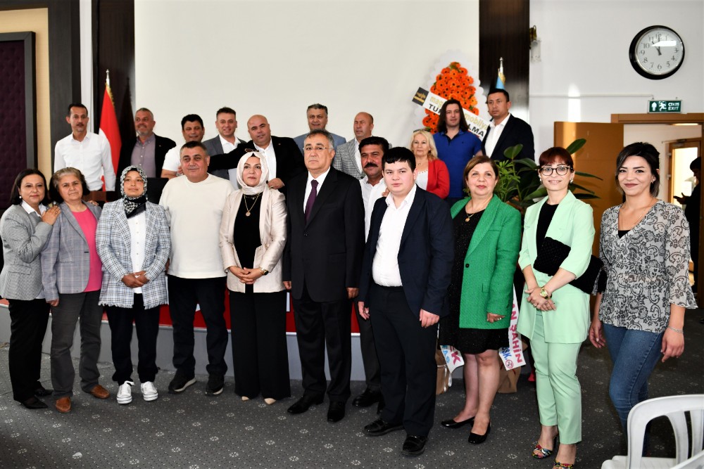 Genel Kurul'da mevcut Başkan Tülay Ateş'ten başkanlık bayrağını Turan Şahin devraldı. Aksu Belediye Başkanı İsa Yıldırım Tülay Ateş'e hizmetlerinden dolayı plaket takdim ederken, Turan Şahin'e başarılar diledi.