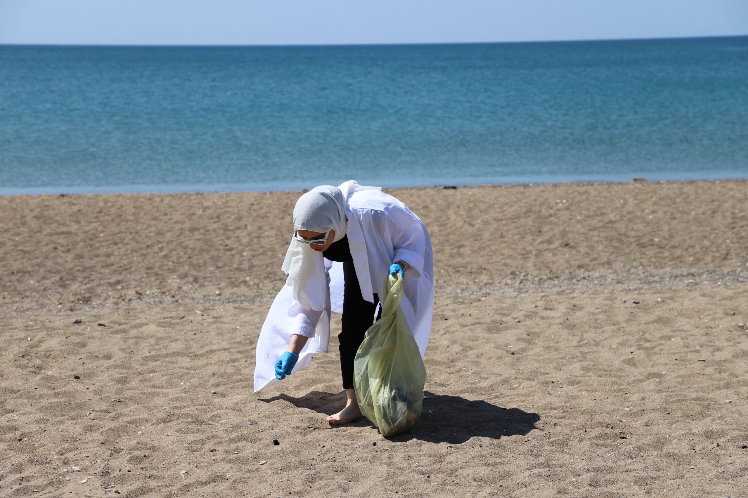 Kıyı temizliği sırasında özellikle deniz kaplumbağalarının yumurta bıraktığı alanlardaki çöpler toplandı.