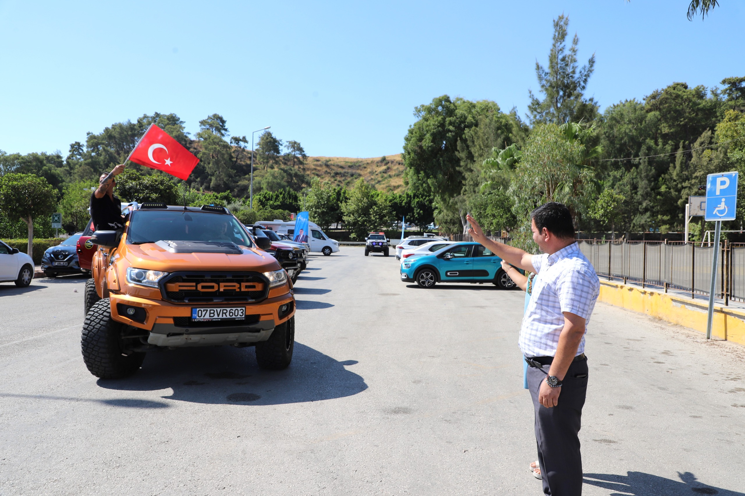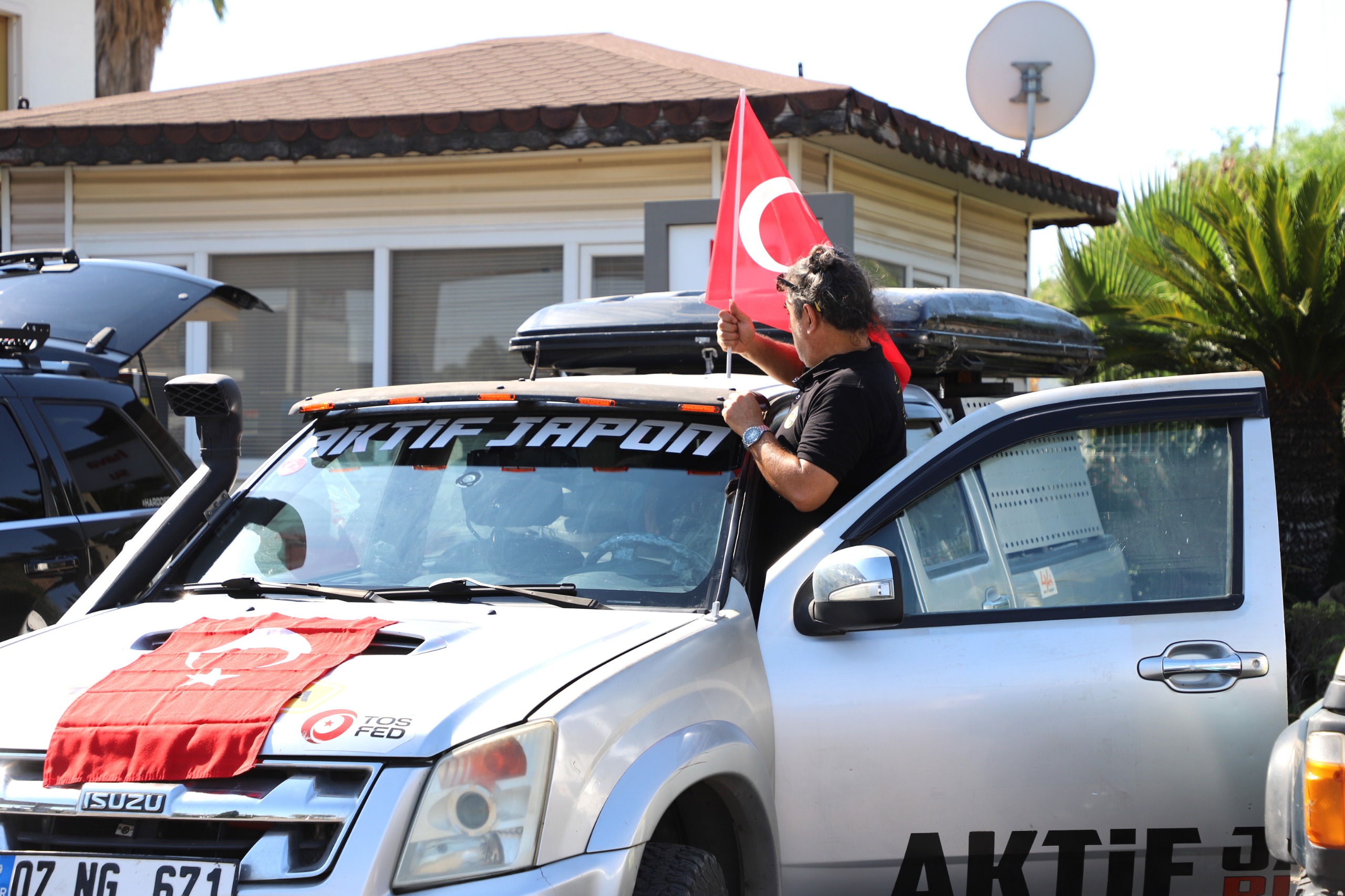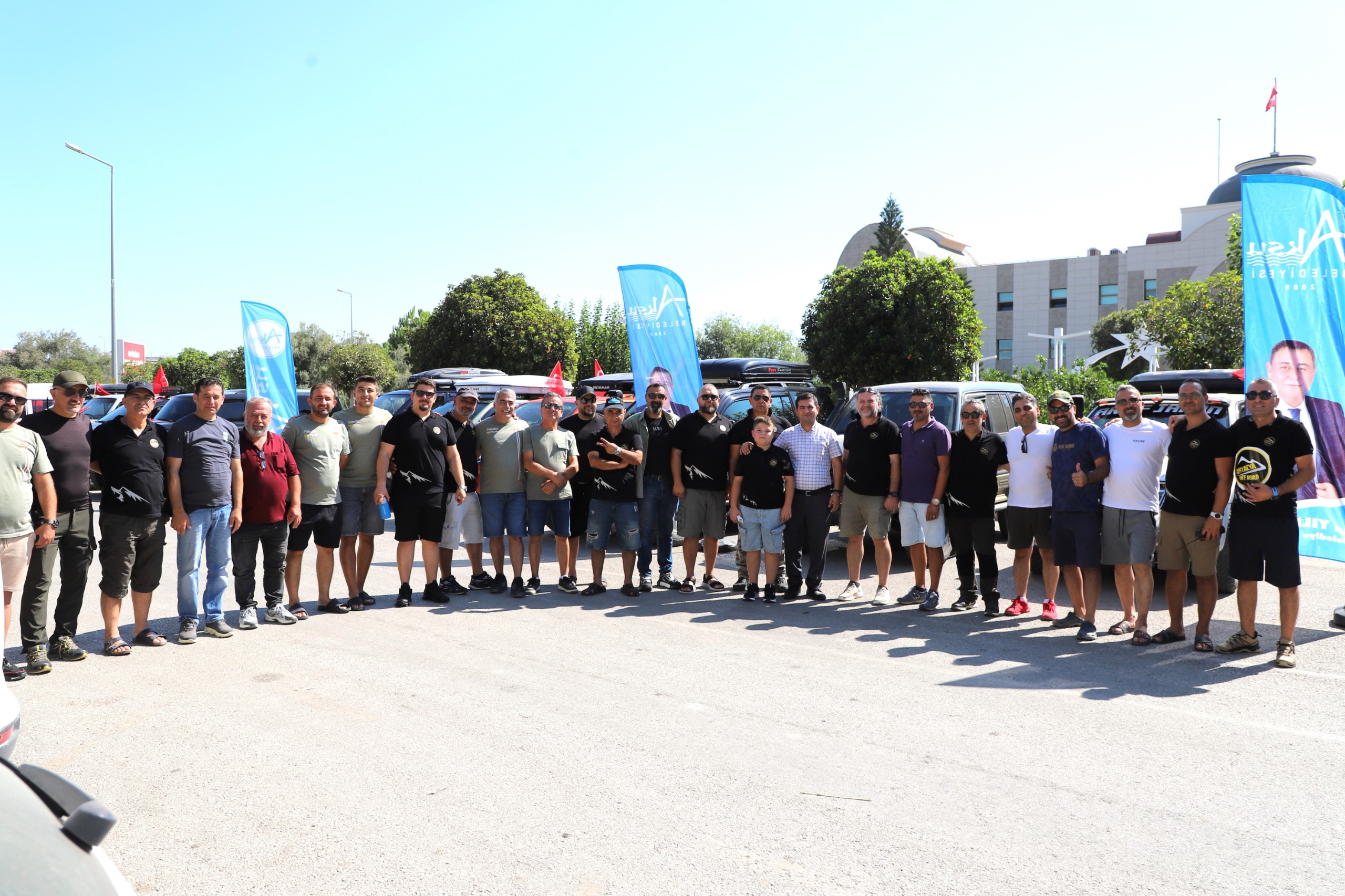 Transanatolia 2025 Rally Raid'e katılacak Antalya Offroad ve Otomobil Sporları Kulübü üyeleri, yarış araçlarıyla birlikte Aksu Belediyesi Hizmet Binası önünde bir araya geldi. Belediye binası önünde karışılanan katılımcılara Türk Bayrağı hediye edildi.