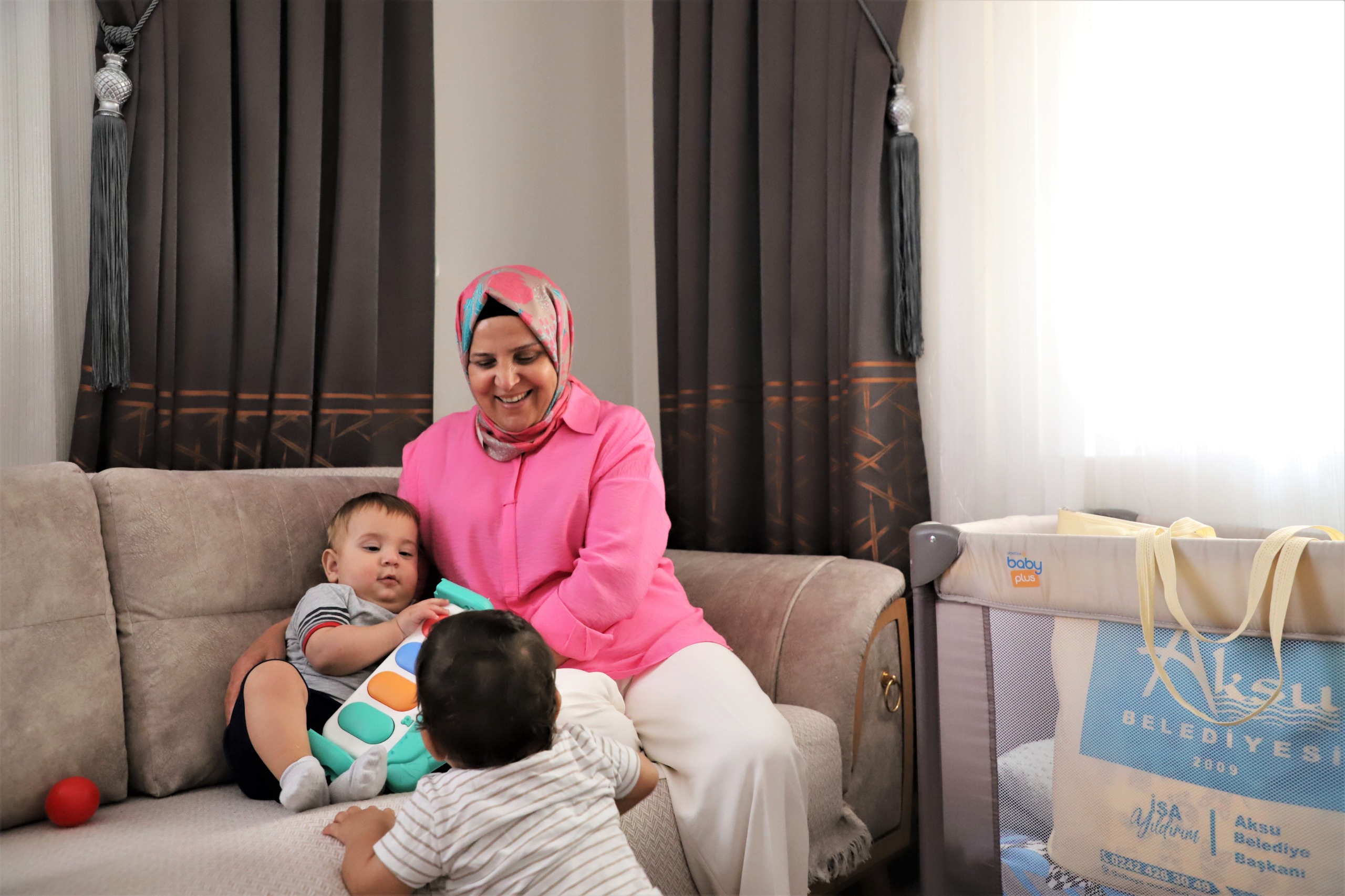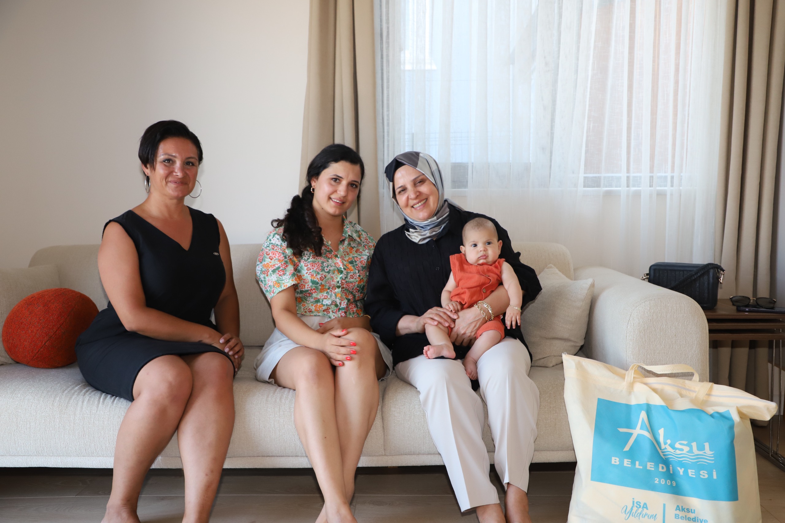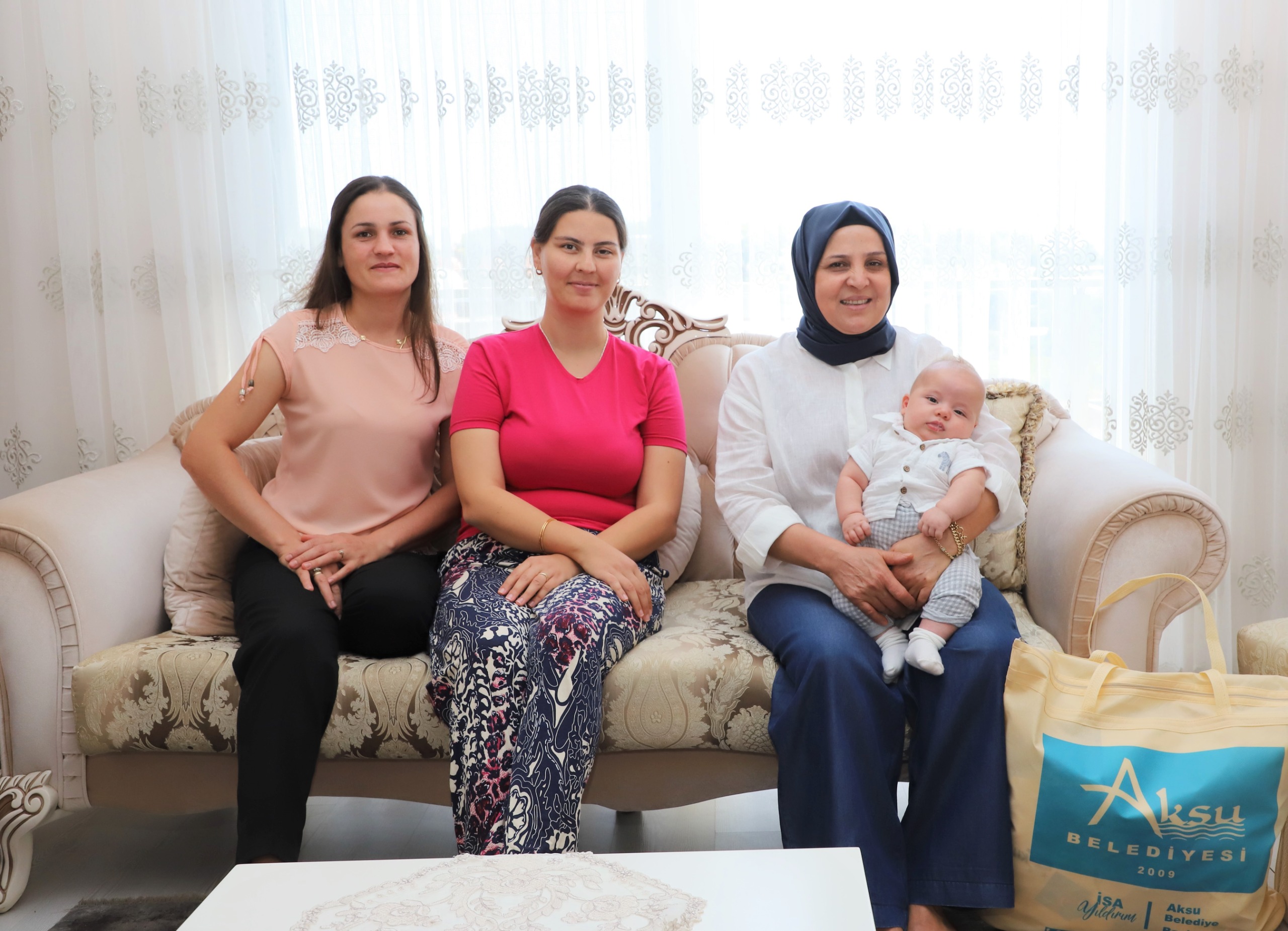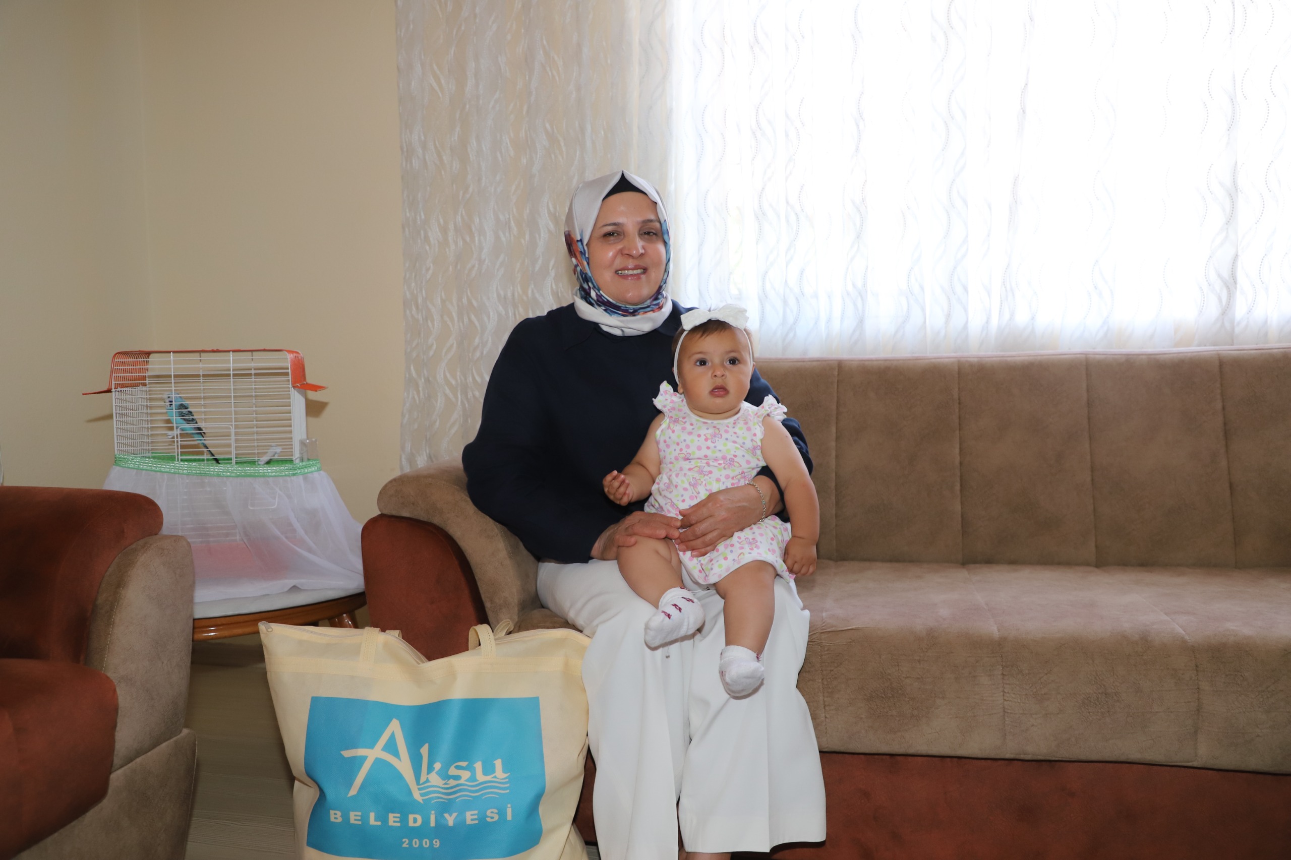 Aksu Belediye Başkanı İsa Yıldırım’ın eşi Emine Yıldırım, Kültür ve Sosyal İşler Müdürlüğü tarafından başlatılan “Yeni Doğan” projesi kapsamında ilçede bebek sahibi olan aileleri evlerinde ziyaret etmeyi sürdürüyor.
