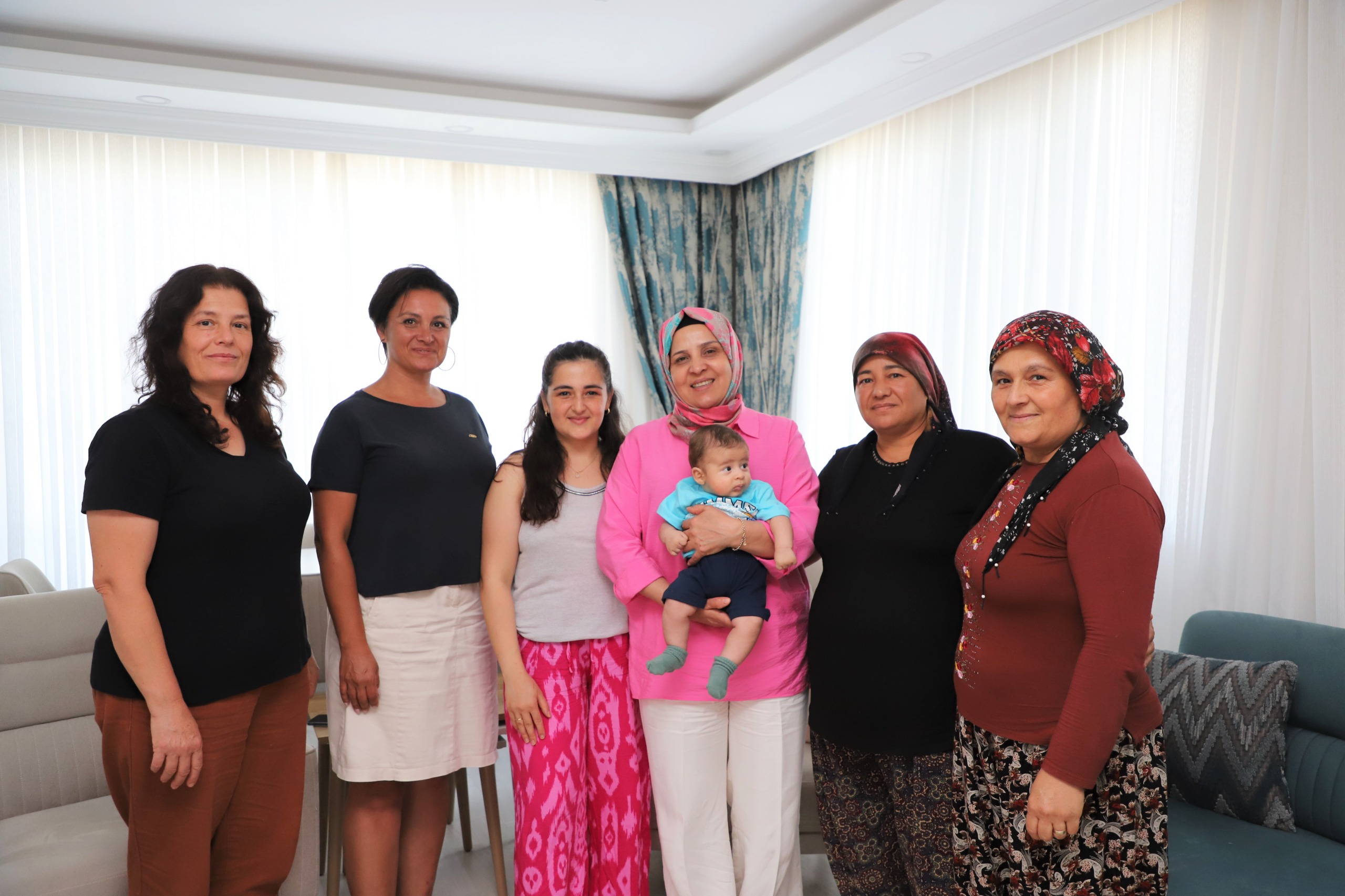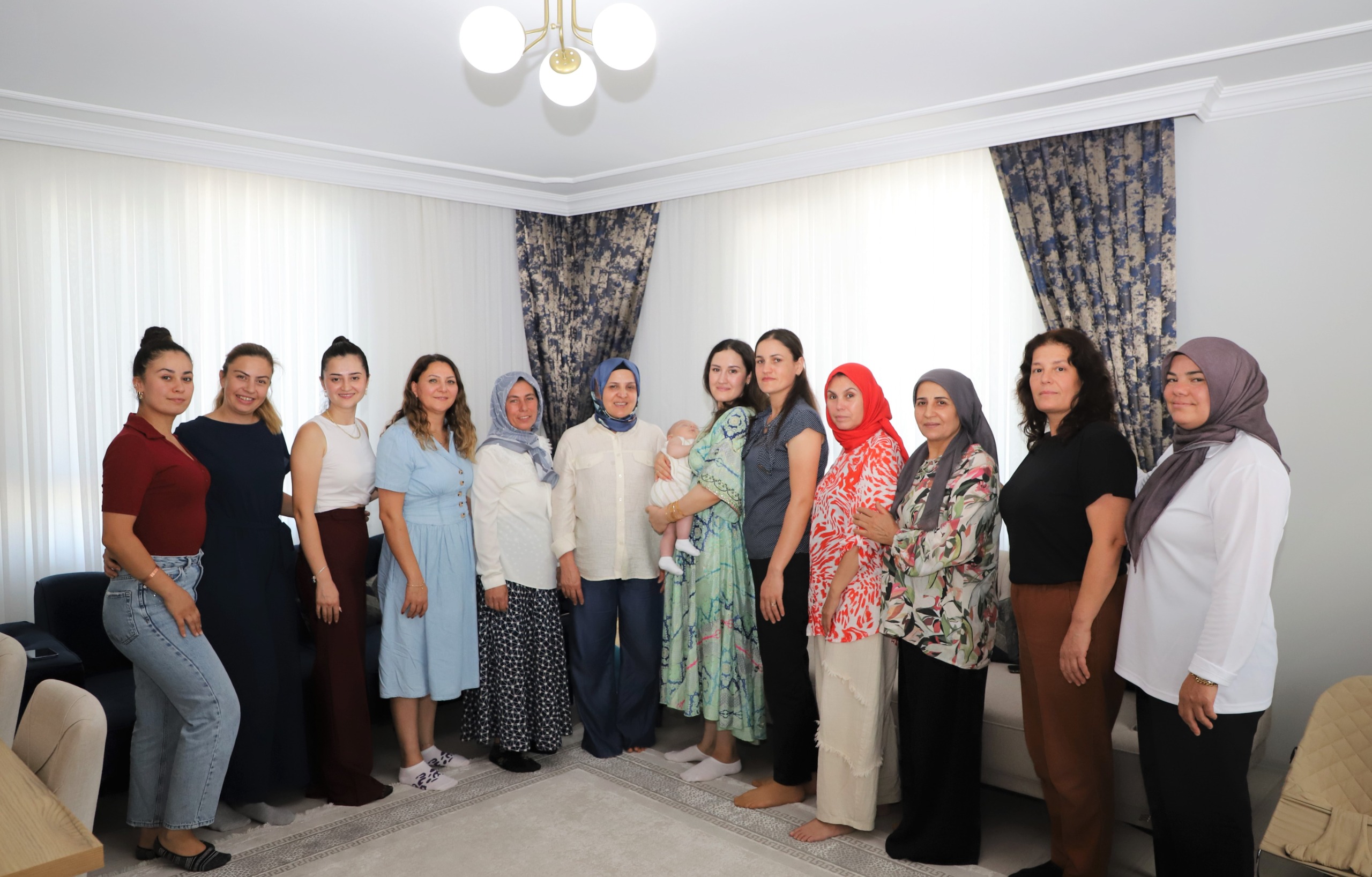 Proje kapsamında ilçede bebek sahibi olan aileleri evlerinde ziyaret ederek, hayırlı olsun dileklerini ileten Emine Yıldırım’a Başkan Yardımcıları Hüseyin Çelik’in eşi Merve Çelik, Mevlüt Uludağ’ın eşi Şengül Uludağ ve belediye birim müdürleri eşlik etti.