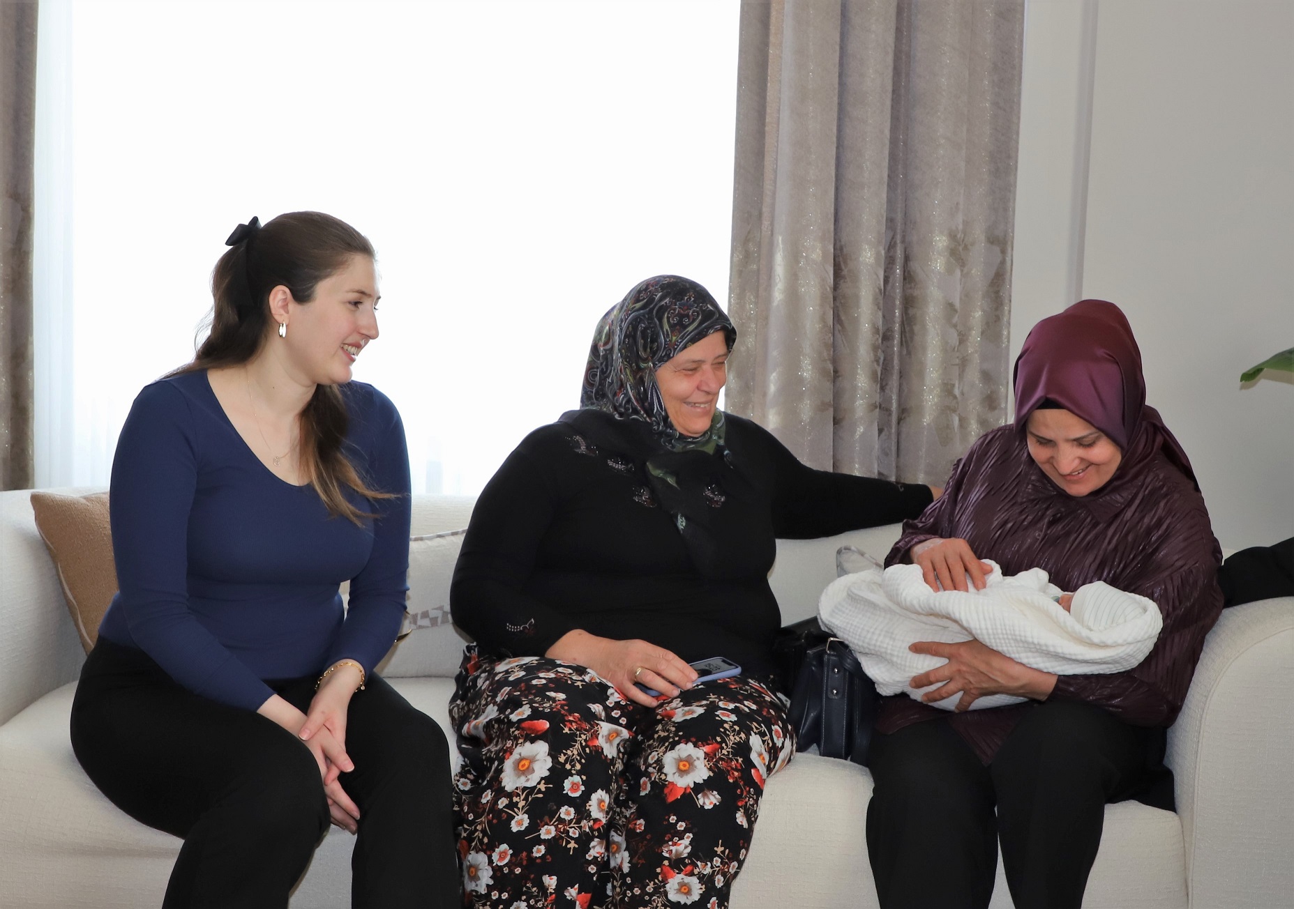 Aksu Belediye Başkanı İsa Yıldırım’ın eşi Emine Yıldırım yeni doğan bebekleri ve ailelerini evlerinde ziyaret etmeye devam ediyor.