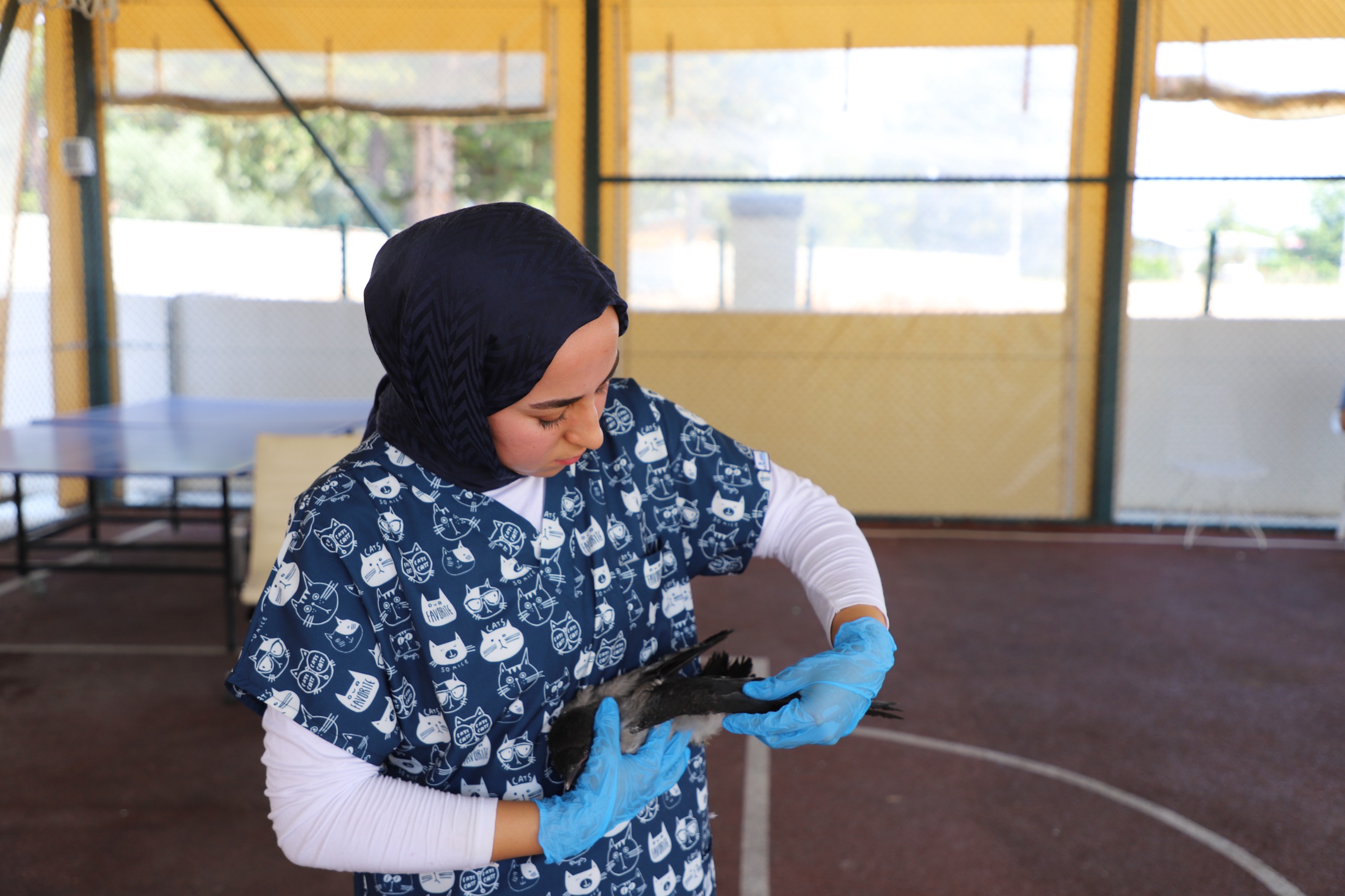 Aksu Topallı Mahallesi’nde hizmet veren Şahin Harun Kırbıyık Kurs Merkezi/Akdeniz Otizm Derneği bahçesinde yaralı olarak bulunan karga, özel çocuklar tarafından fark edilerek koruma altına alındı. Yaralı kargıyı gören özel çocuklar, dernek yetkilileriyle birlikte hemen yardım çağrısında bulundu.