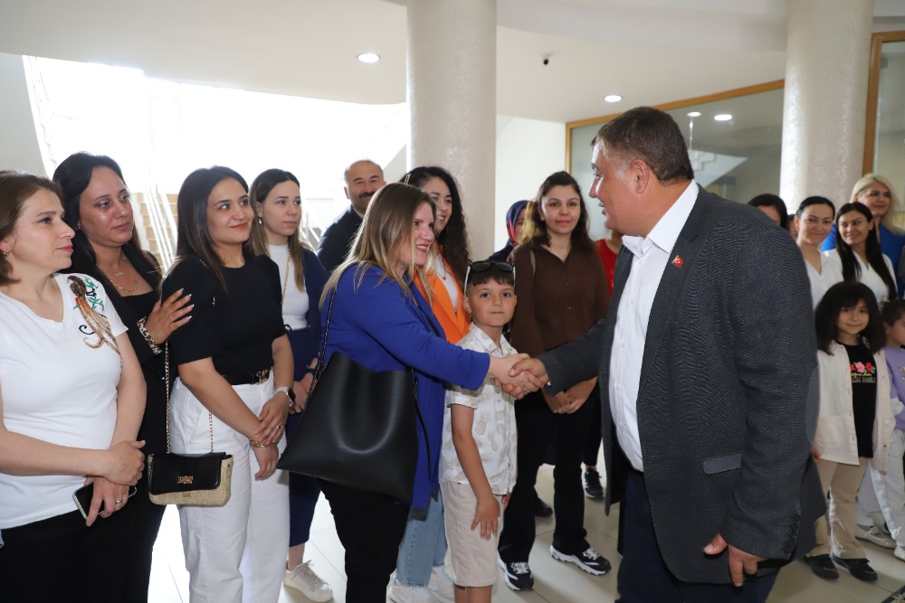 Belediyedeki bayramlaşma töreninde Başkan Yıldırım’ı eşi Emine Yıldırım ve kızları da yalnız bırakmazken, Korkuteli İmecikliler Dernek Başkanı Aksu Medikal Sahibi Ömer Şahin Başkan Yıldırım’a annesiyle birlikte fotoğrafının yer aldığı bir tablo hediye etti. Hediye karşısında duygulanan Yıldırım, Şahin’e teşekkür etti.