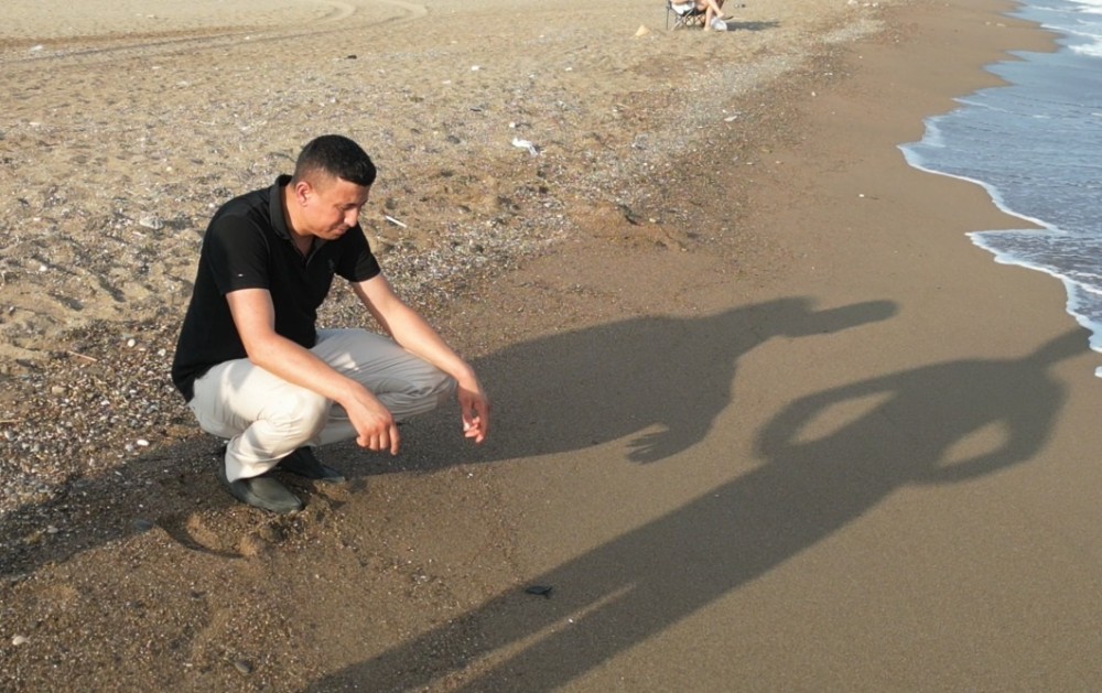 Aksu Belediyesi’nin sahilde oluşturduğu Halk Plajlarındaki çalışmaları inceleyen Aksu Belediye Başkan Yardımcısı Hüseyin Çelik, günün sıcak saatlerinde sahilden uzakta kumların arasında bir caretta caretta yavrusunun çabaladığını gördü.