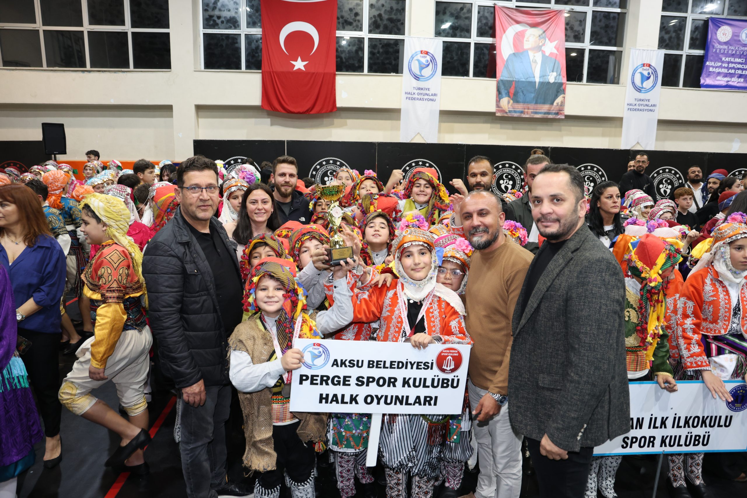 Türkiye Halk Oyunları Federasyonu tarafından 5 Nisan Pazar günü Fatih Kapalı Spor Salonu’nda düzenlenen kulüpler arası il müsabakalarına katılan Aksu Perge Spor Kulübü folklor ekibi, minikler düzenlemeli halk oyunları dalında sergilediği performansla il ikinciliğini elde etti. Aynı müsabakada Aksu’yu temsilen yer alan Karaöz Ortaokulu Spor Kulübü Halk Oyunları Ekibi ise Gençler Düzenlemesiz Halk Oyunları kategorisinde il birincisi oldu.