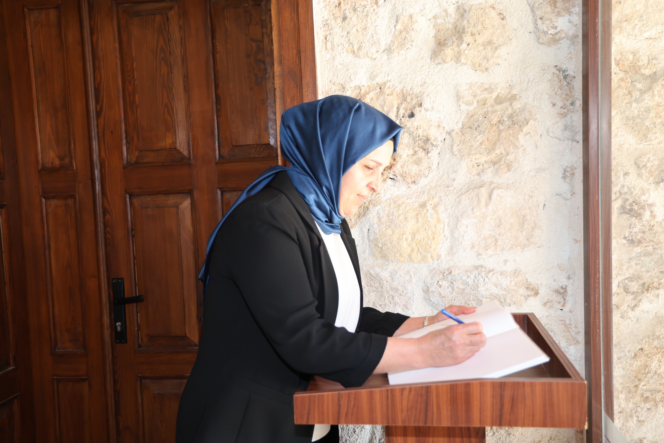 Aksu Belediye Başkanı İsa Yıldırım’ın eşi Emine Yıldırım, Başkan Yardımcısı Mehmet Atalay ile birlikte yeniden düzenlenen Aksu Belediyesi Taş Mektep Halk Kütüphanesini ziyaret etti.